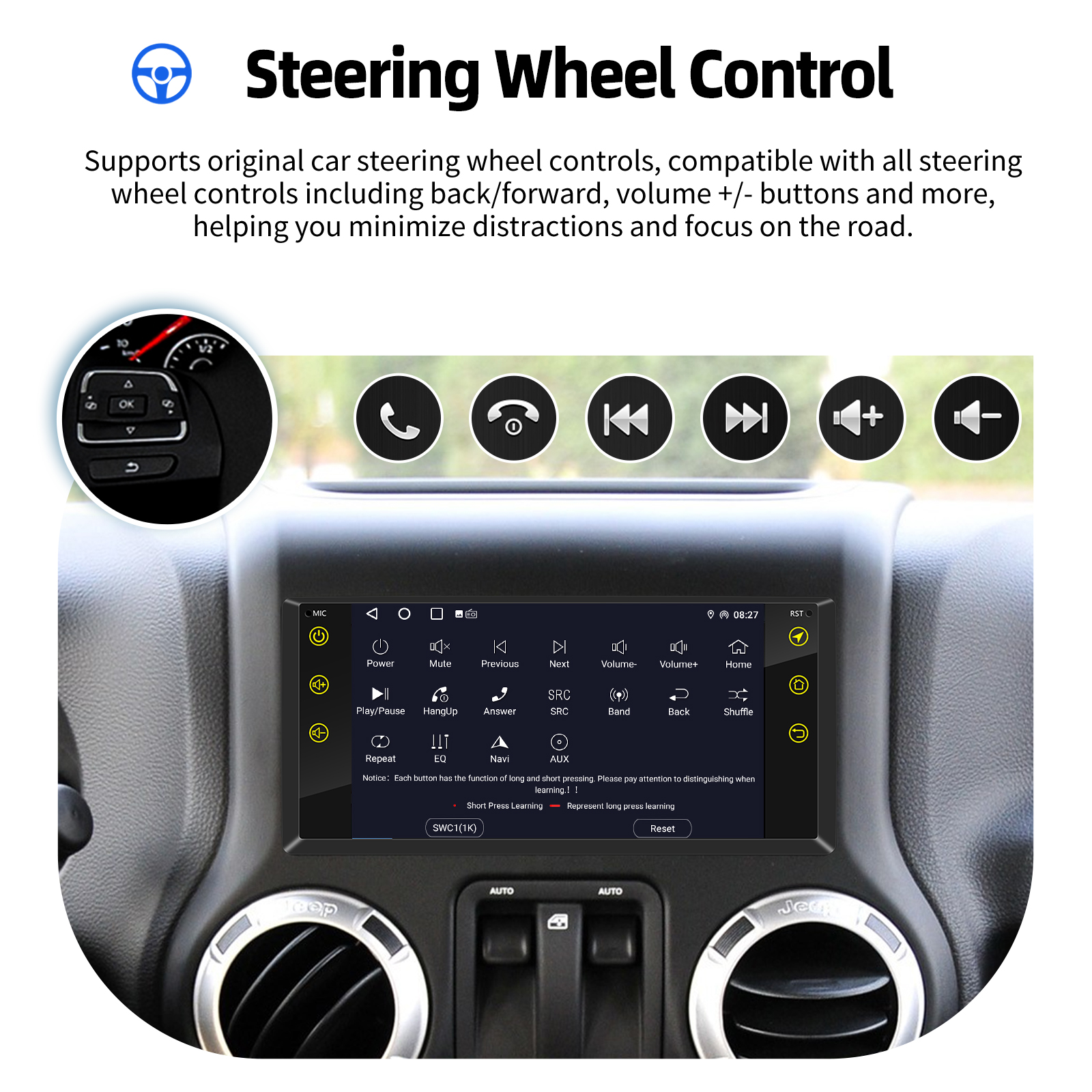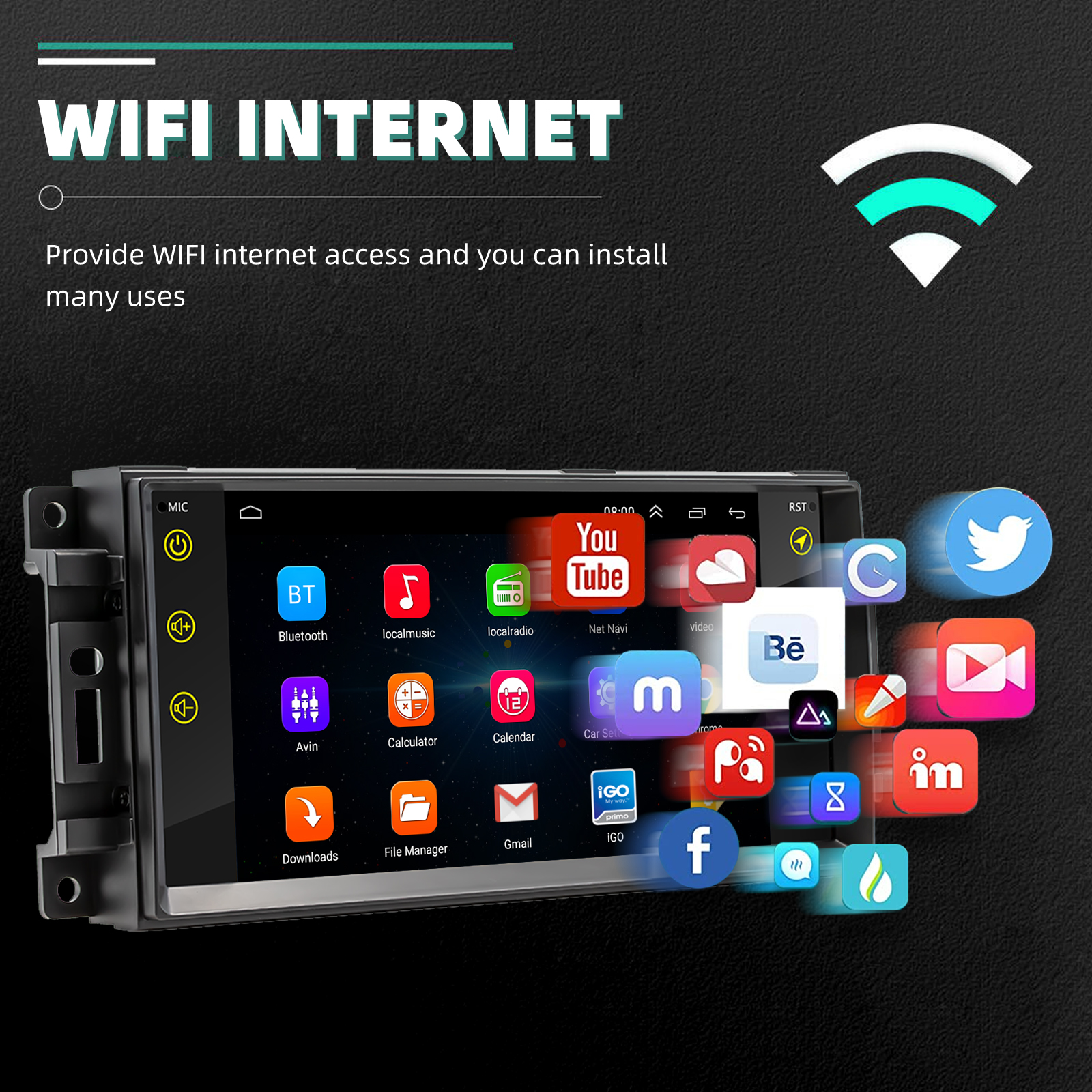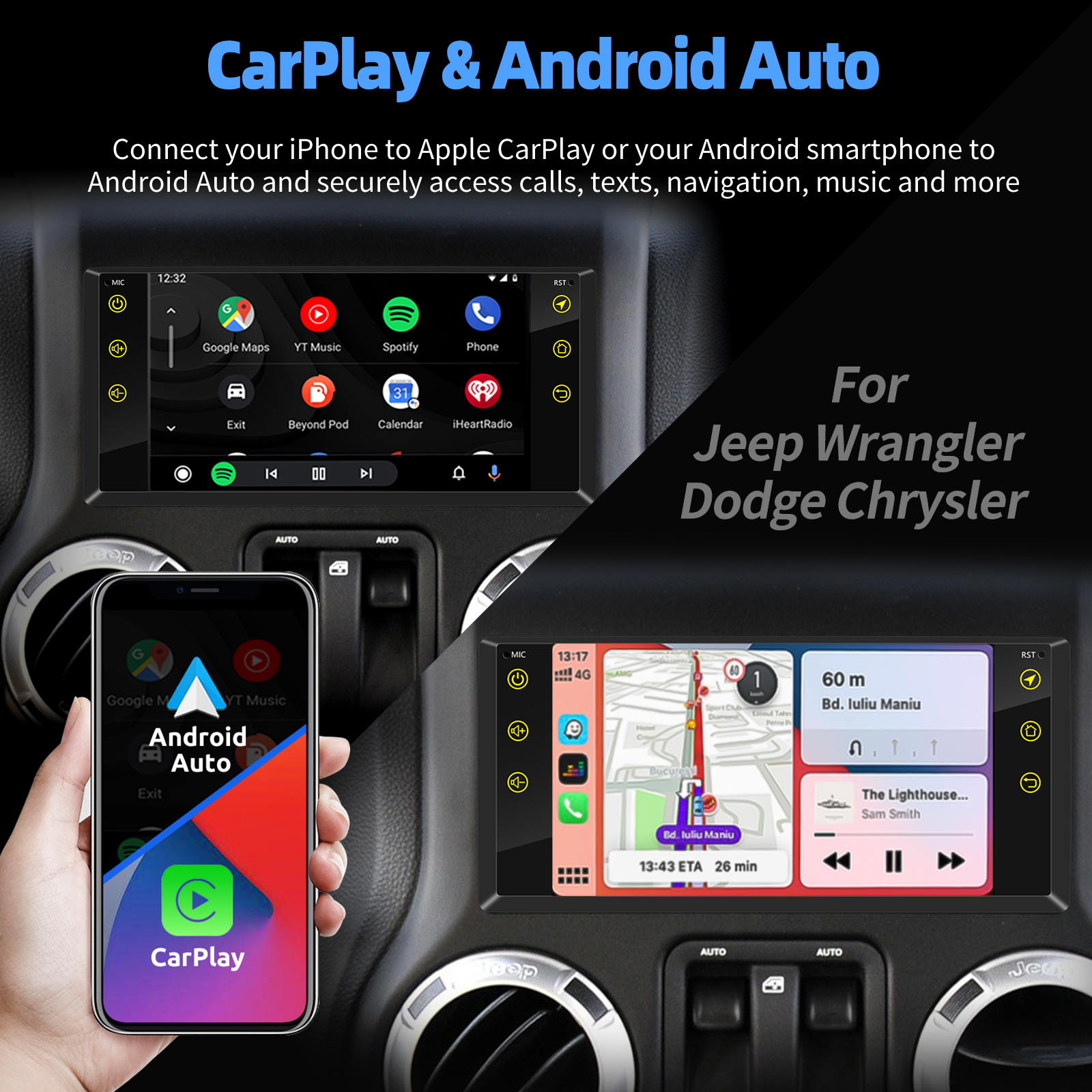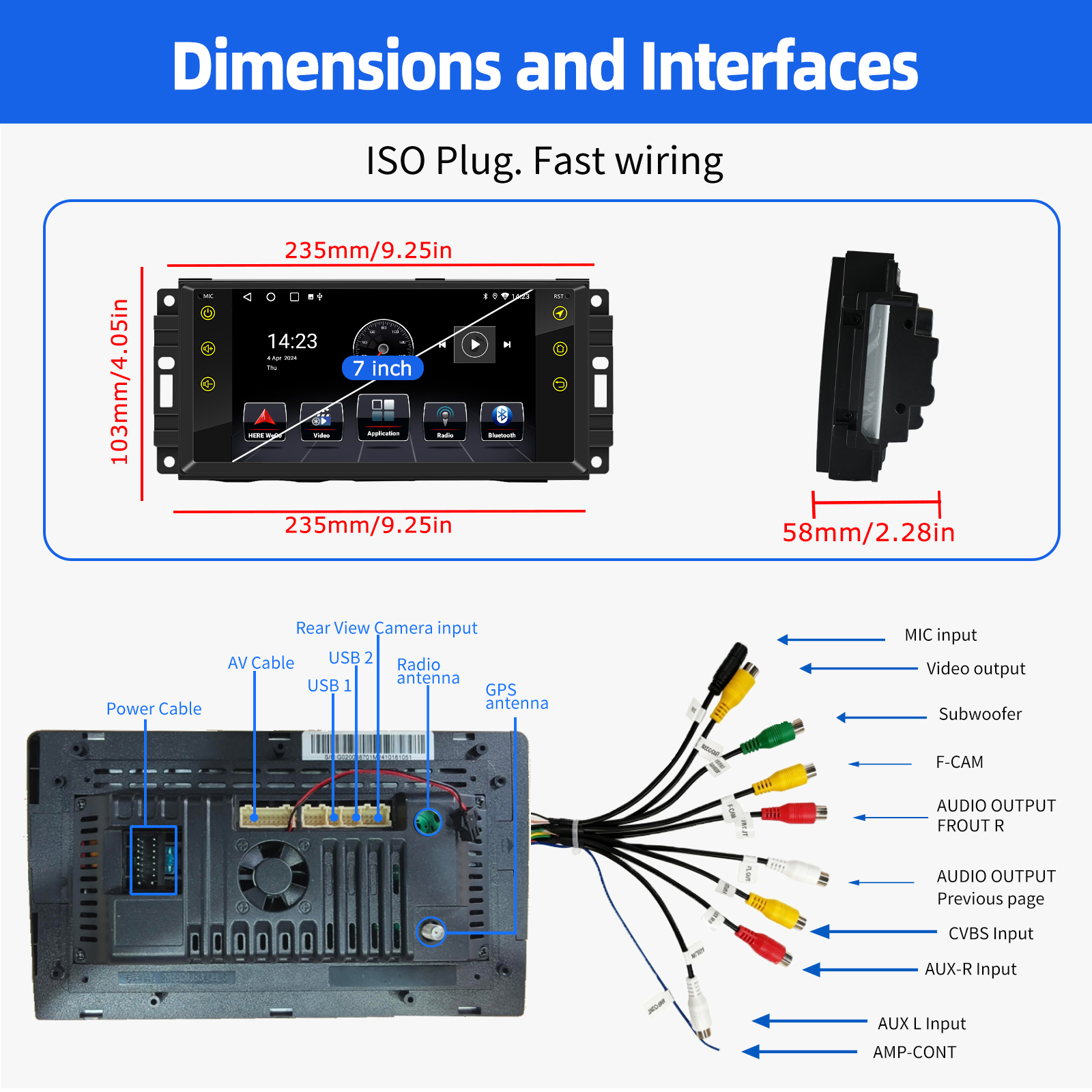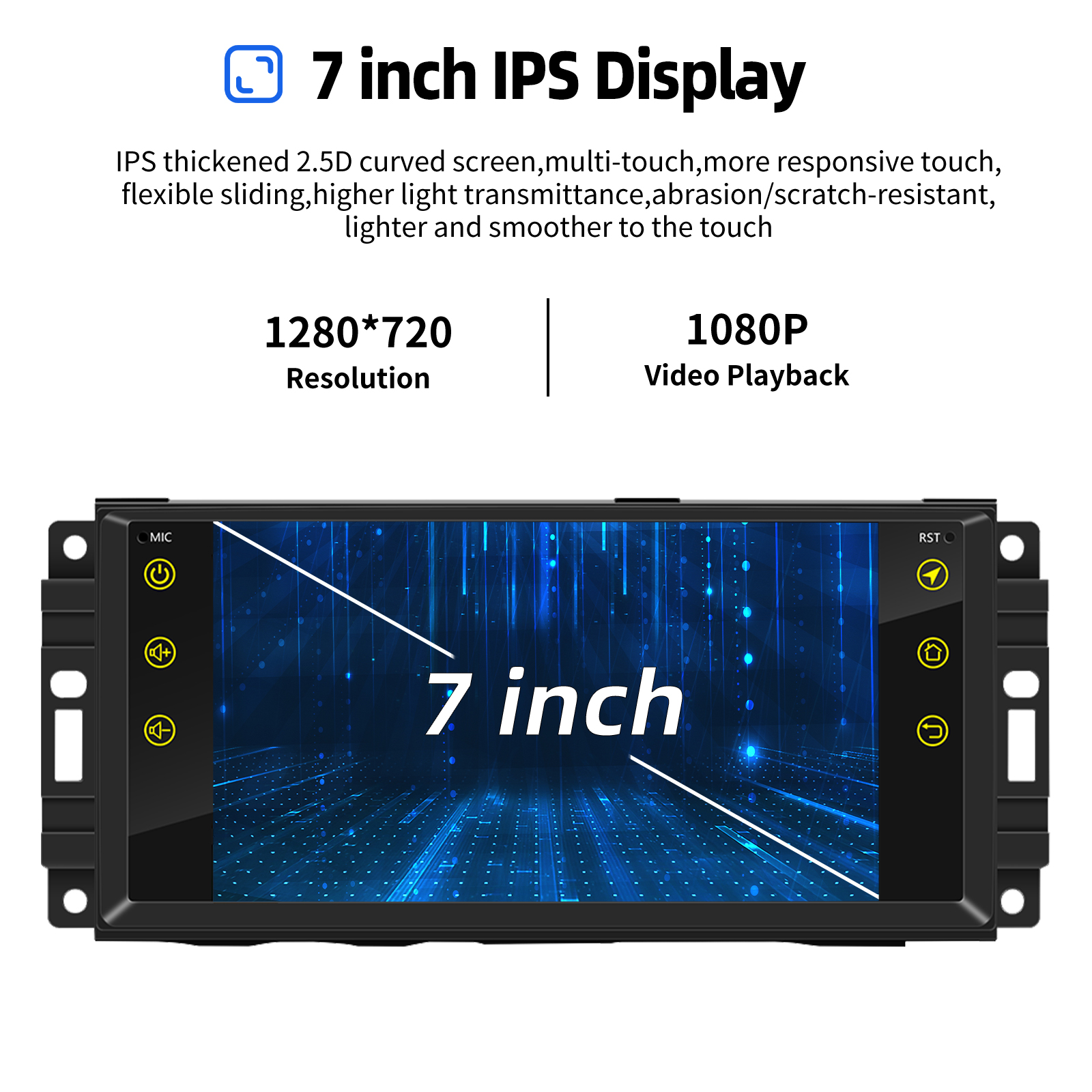 7 inch Android 15 car radio For Chevrolet Chrysler Jeep Dodge :The Android car radio with 7" 1280*720 HD capacitive touch screen, 2GB RAM and 32GB ROM allows you to download your favorite apps and videos, so that driving is no longer boring. No additional frame, no cable change, plug and play. It comes with Canbus and supports most of the original functions: steering wheel control, reverse signals and reading original computer data, etc.Wireless Carplay & Android Auto: Immerse yourself in a seamless and user-friendly infotainment experience with Apple CarPlay & Android Auto. Connect your iPhone to Apple CarPlay or your Android smartphone to Android Auto and securely access calls, texts, navigation, music and more. With intuitive operation via the touchscreen or voice control, you have all functions at your fingertips while you remain safely at the wheel. Use your favorite apps and stay connected at all times while keeping your eyes on the road. Turn your vehicle into an extended hub for your mobile devices and experience a new dimension in infotainment.