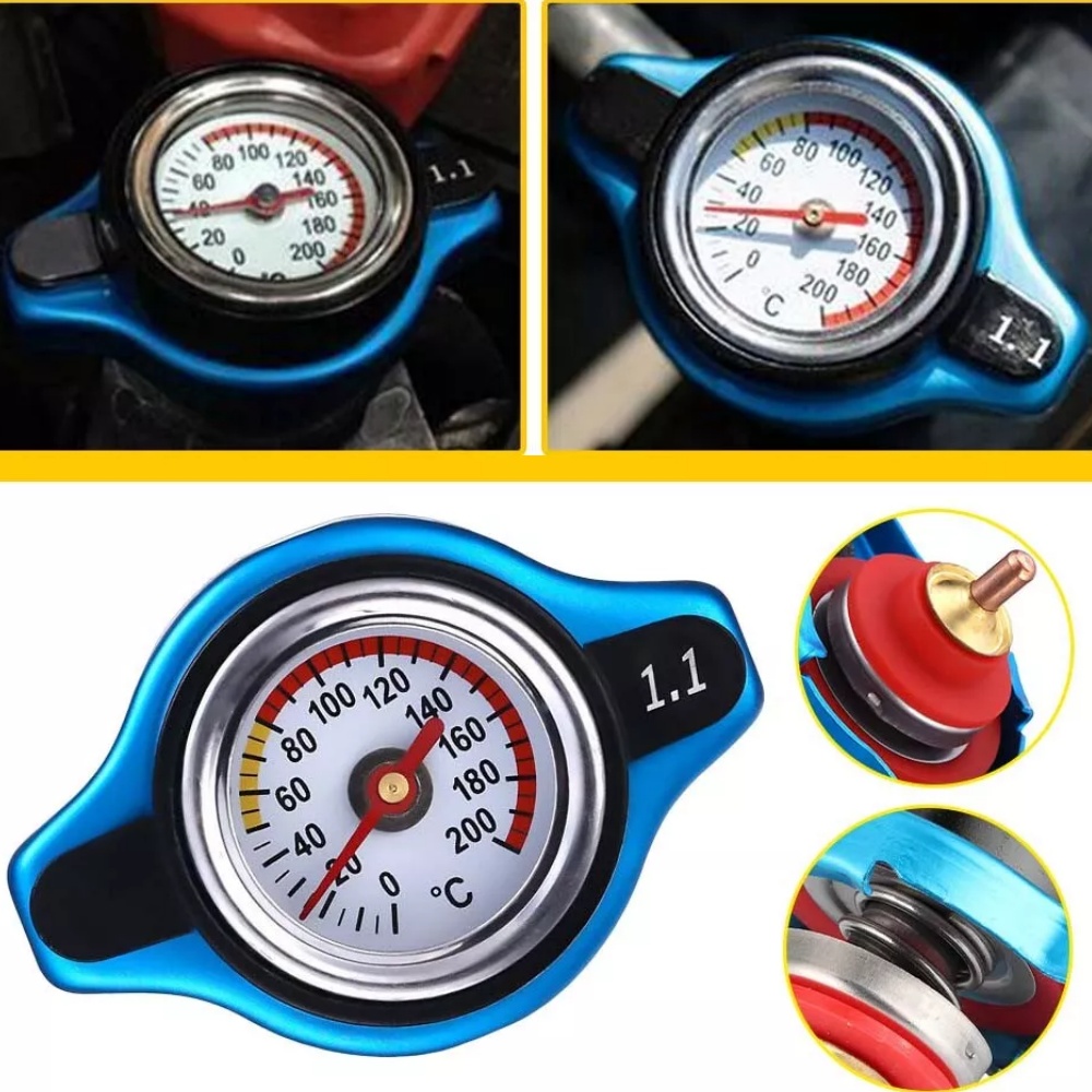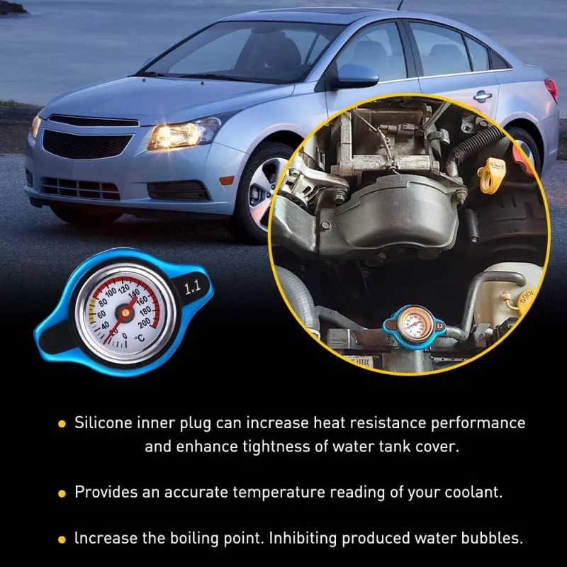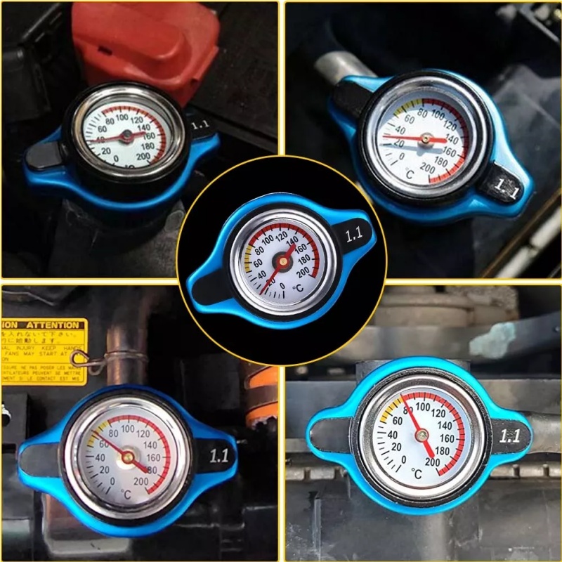 The radiator cap with temperature gauge not only prevents the water tank from leaking, increasing the tightness of the water tank cover, but also adjusting the pressure balance for the water tank to keep the water level balance. A safety water tank cap with a temperature gauge can show you the accurate water tank temperature without launching the engine. And the silicone inner stopper helps enhance the heatproof function and the compactness of the tank cap.