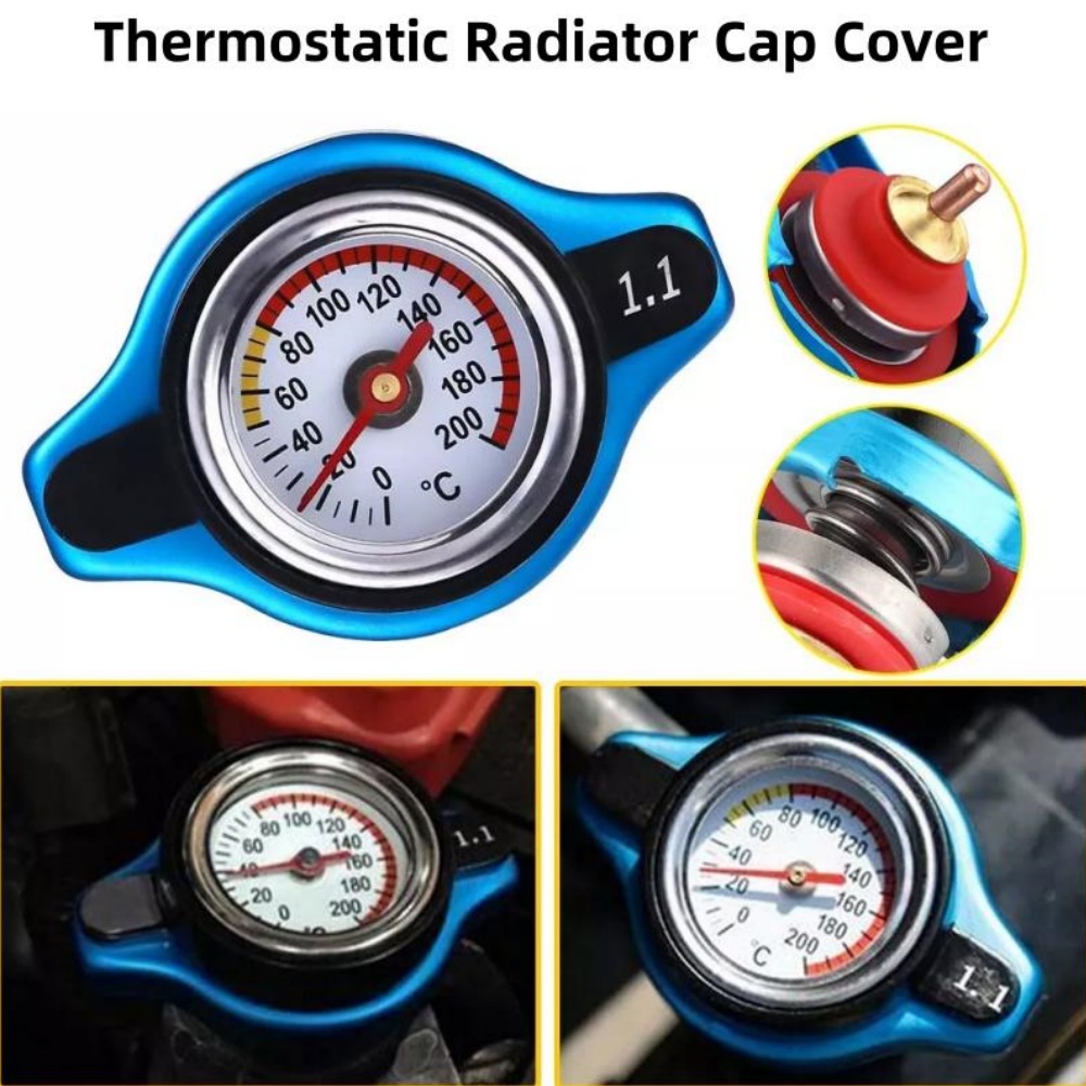 Blue Small Head Thermostatic Radiator Cap Cover Water Temp Gauge 1.1 BAR For Car
