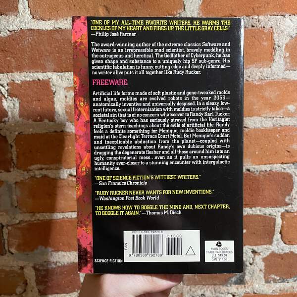 Blurb: “The award-winning author of the extreme classics Software and Wetware is an irrepressible mad scientist, bravely meddling in the outrageous and heretical. The Godfather of Cyberpunk, he has given shape and substance to a uniquely hip SF sub-genre. His scientific fabulation is funny, cutting edge and deeply informed-no writer alive puts it all together like Rudy Rucker.