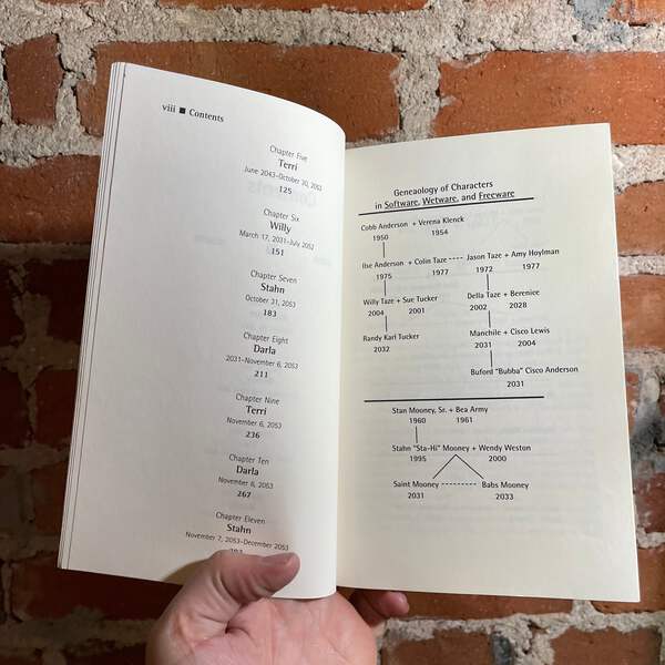 A Kentucky boy who has seriously strayed from the Heritagist religion's stern teachings about the evils of artificial life, Randy feels a definite something for Monique, moldie bookkeeper and maid at the Clearlight Terrace Court Motel. But Monique's sudden and inexplicable abduction from the planet-coupled with unsettling revelations about Randy's own dubious origins-is dragging the degenerate flesher and all those around him into an ugly, conspiratorial mess...even as it pulls an unsuspecting humanity ever-closer to a stunning encounter with intergalactic intelligence.”