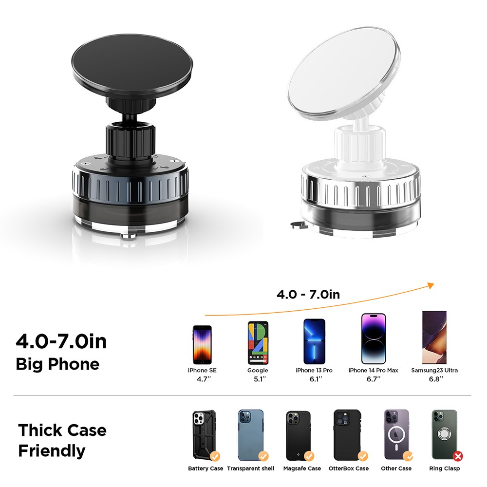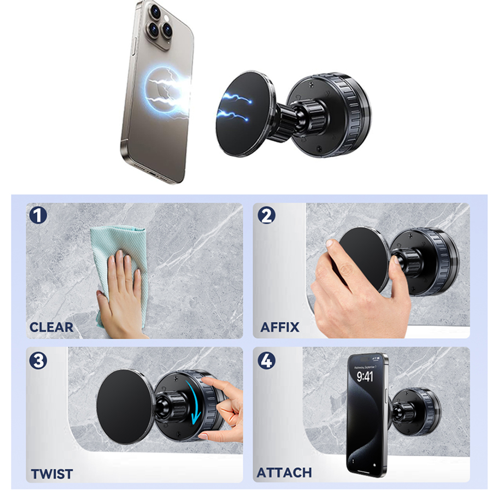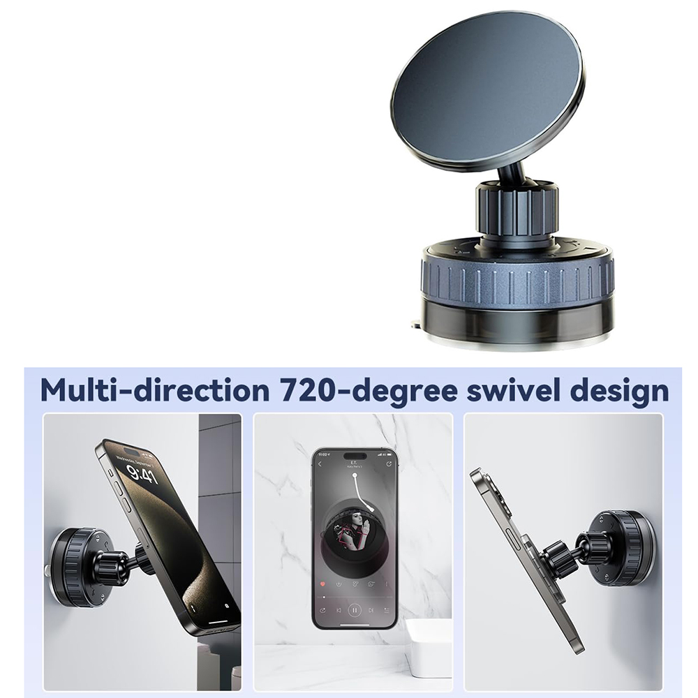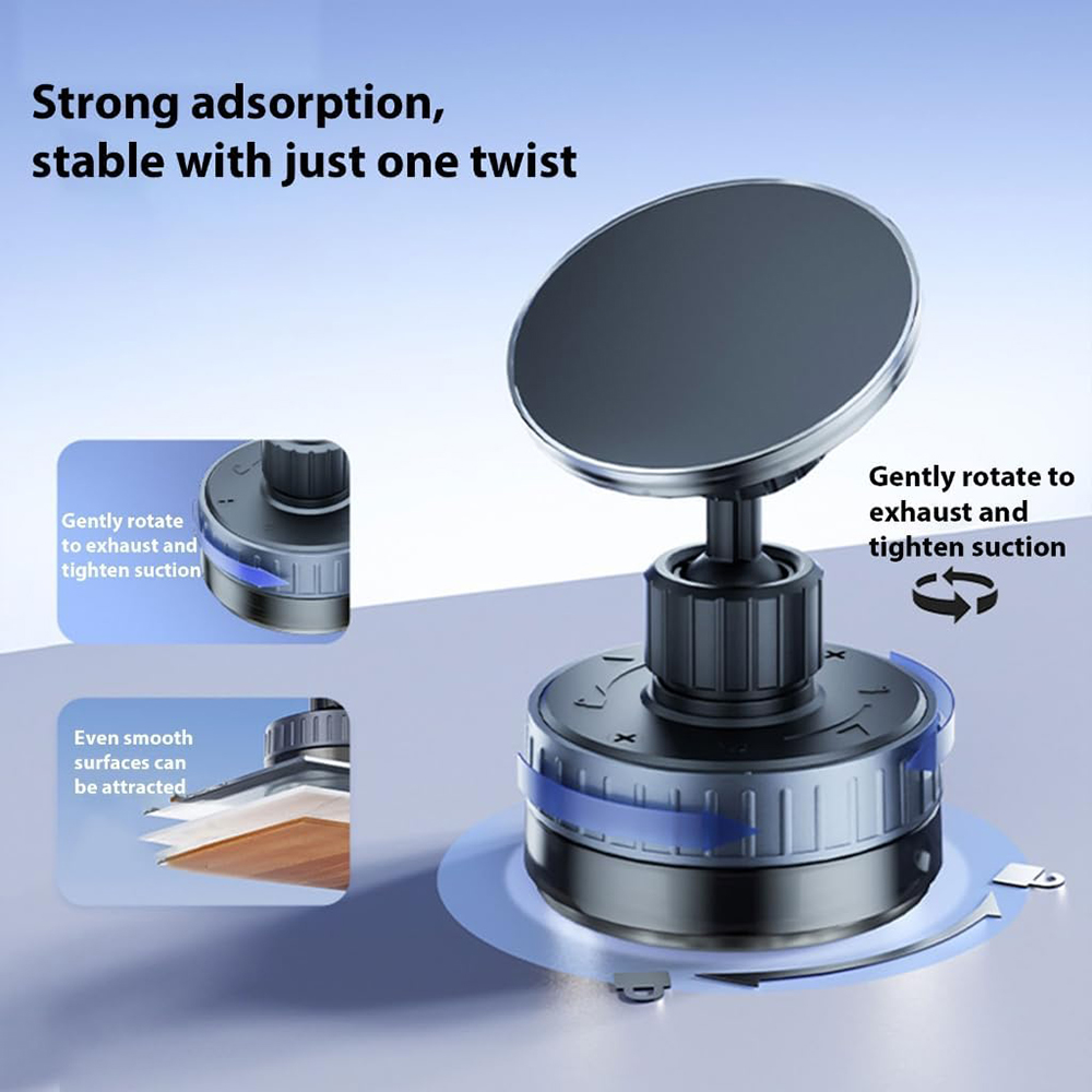 - 【Strong Suction & Stable Hold】the 2025 upgraded vacuum suction magnetic phone holder uses advanced rotating-lock vacuum suction, boosting suction by 45% compared to traditional press-on mounts. It stays stable on bumpy roads or during sudden stops. The 4-layer high-strength nano gel suction cup supports up to 78lbs and holds firm in extreme temperatures (-40°F to 300°F). After 9999+ durability tests and 200+ reattachments, it can be cleaned and regain 99% of its suction power for lasting stability.