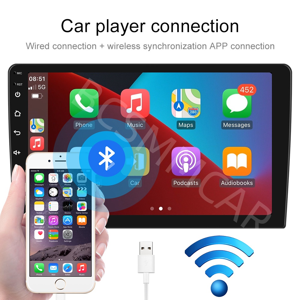 ●Wireless Carplay: You can choose wired connection or wireless connection to carplay, connect to Apple mobile phone, access mobile phone address book, mail, notification, map navigation, music, video and other information, and realize voice control.