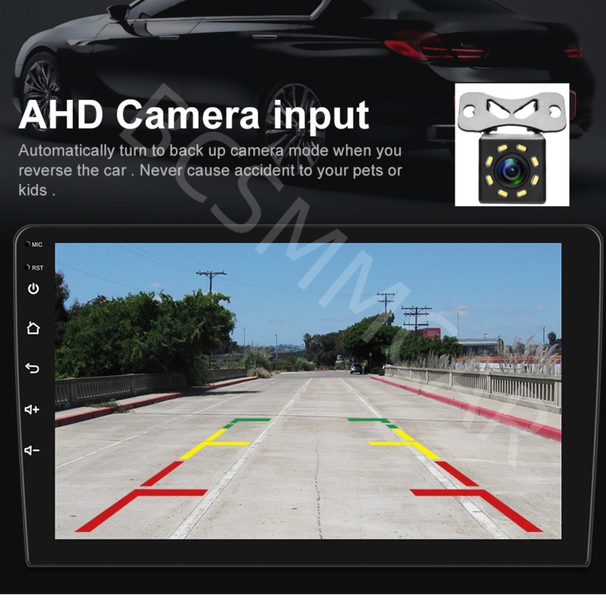 ●Rear camera: support AHD high-definition 720P camera image input,you can switch between CVBS and AHD simply by choosing in the settings (included 8LED Camera)