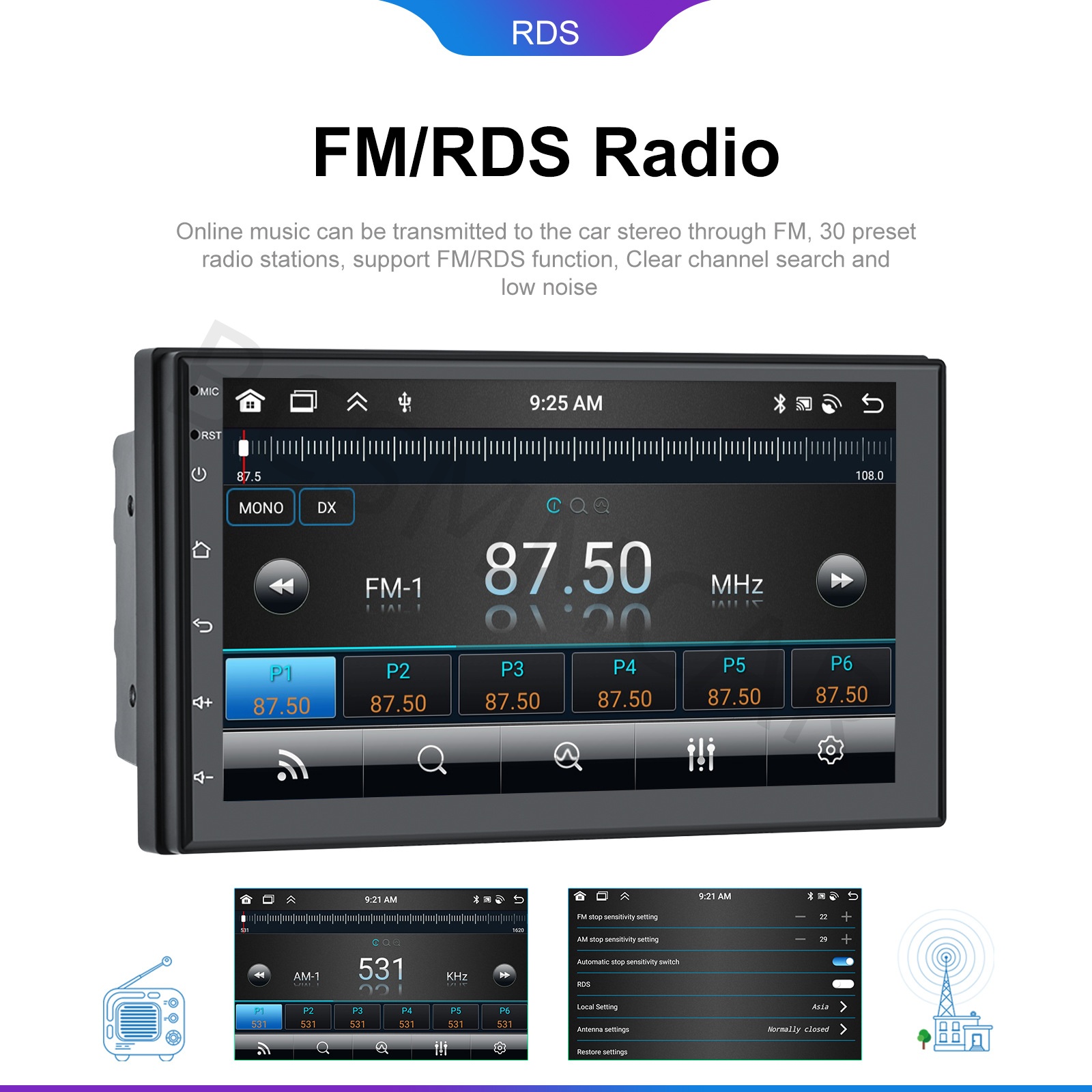 ● FM/RDS radio: Receive radio signals from various stations with clear sound and quality. Listen to music, newsletters and traffic information anytime.