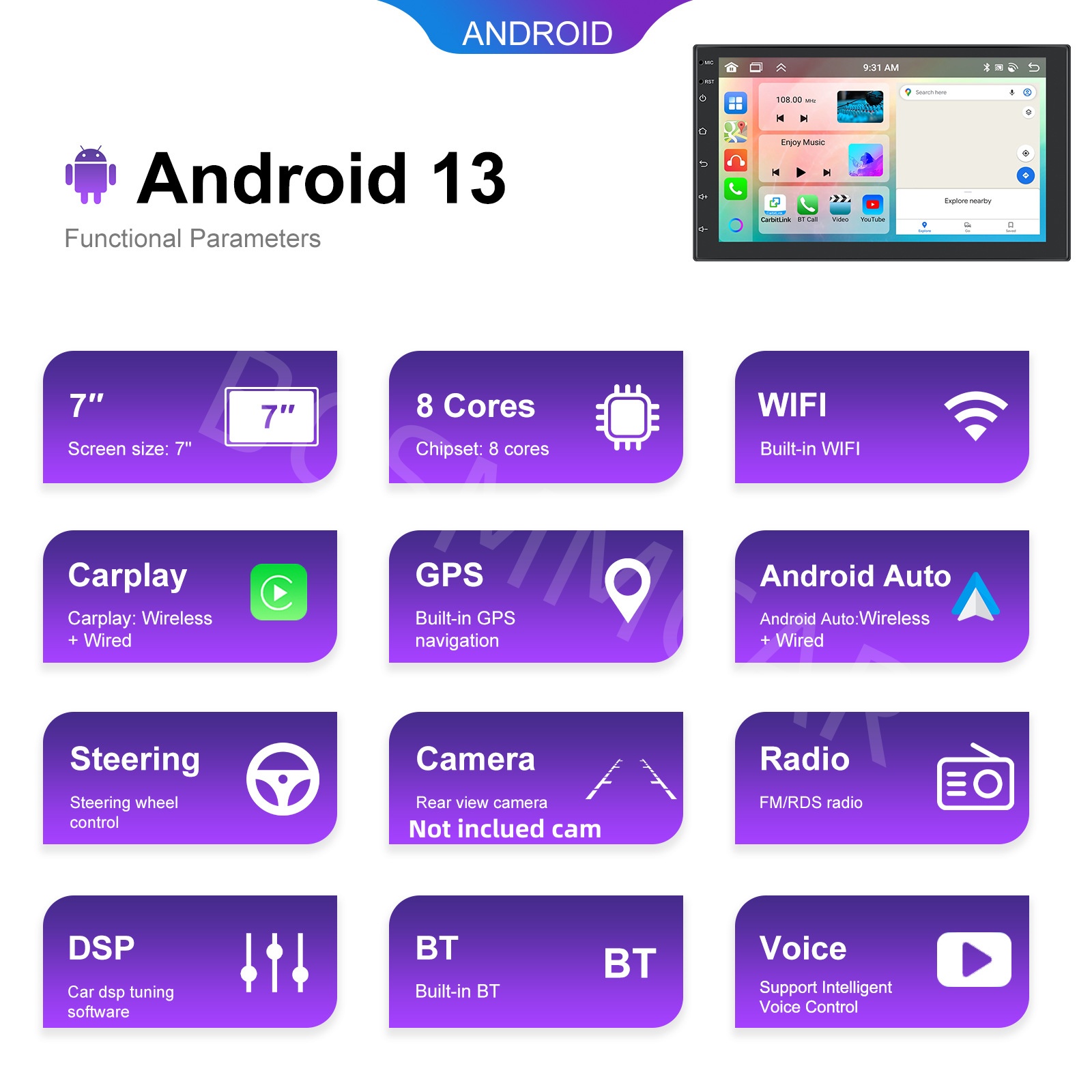 ● Android 13 system: Enjoy the latest and most advanced operating system for your car device, with fast performance, smooth interface, and access to millions of apps.
