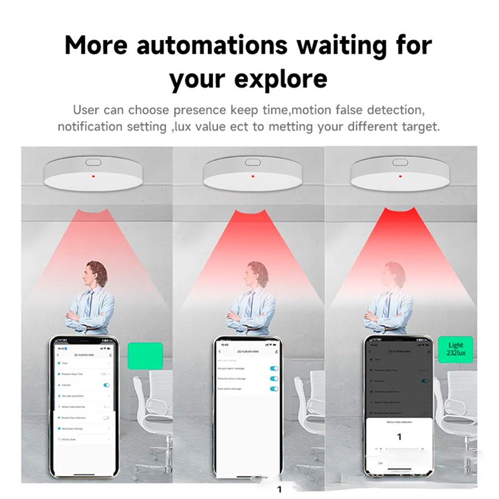 Mouvement humain ou animal subtil avec capteurs multi-personnes et de précision intégrés, grâ pour ce à l'algorithme intelligent MFA peut identifier avec précision si une piè pour ce est occupée ou non.