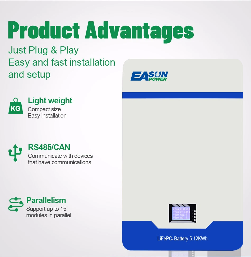 EASUN POWER Powerwall 48V 200AH LiFePO4 Batterie 10KW 51,2V Solar wiederaufladbare Bateria PC Monitor RS485 CAN BMS 6000 Zyklus 10 Jahre Garantie