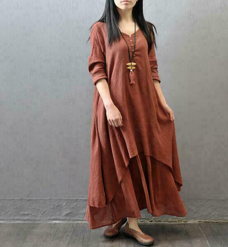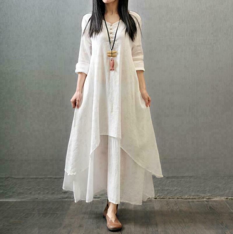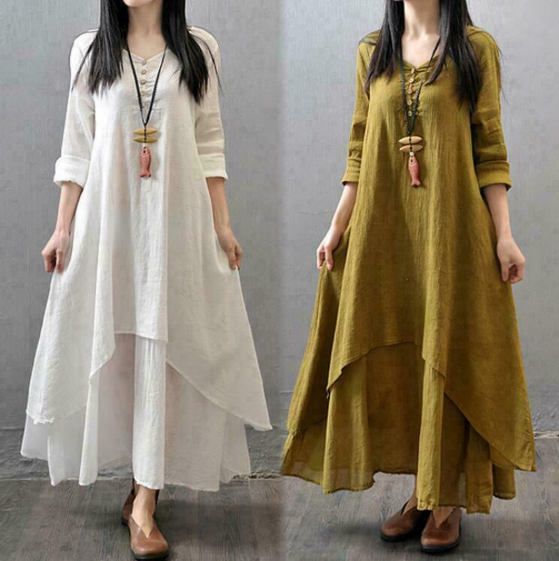 * Condition:Retro Womens Summer Elegant Chinese Linen Clothes Long Dress Plus Size 5X