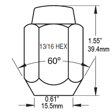- Used for steel wheels with 60 degree tapered seating