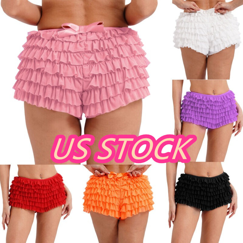 Designed with elastic waist, tiered mesh, multi-layer ruffles and a bowknot at back, mini pants is sexy and stylish for women.