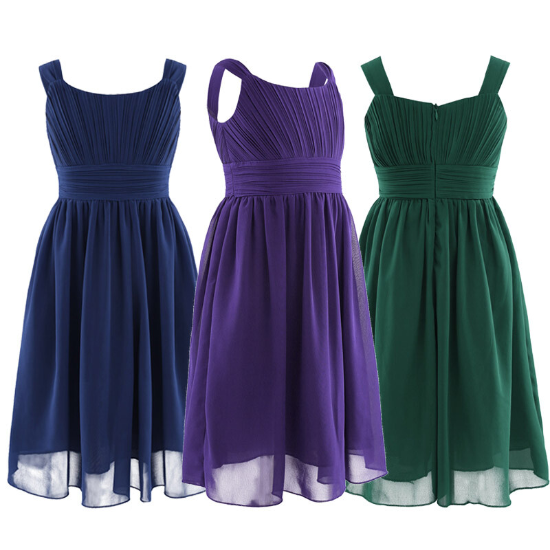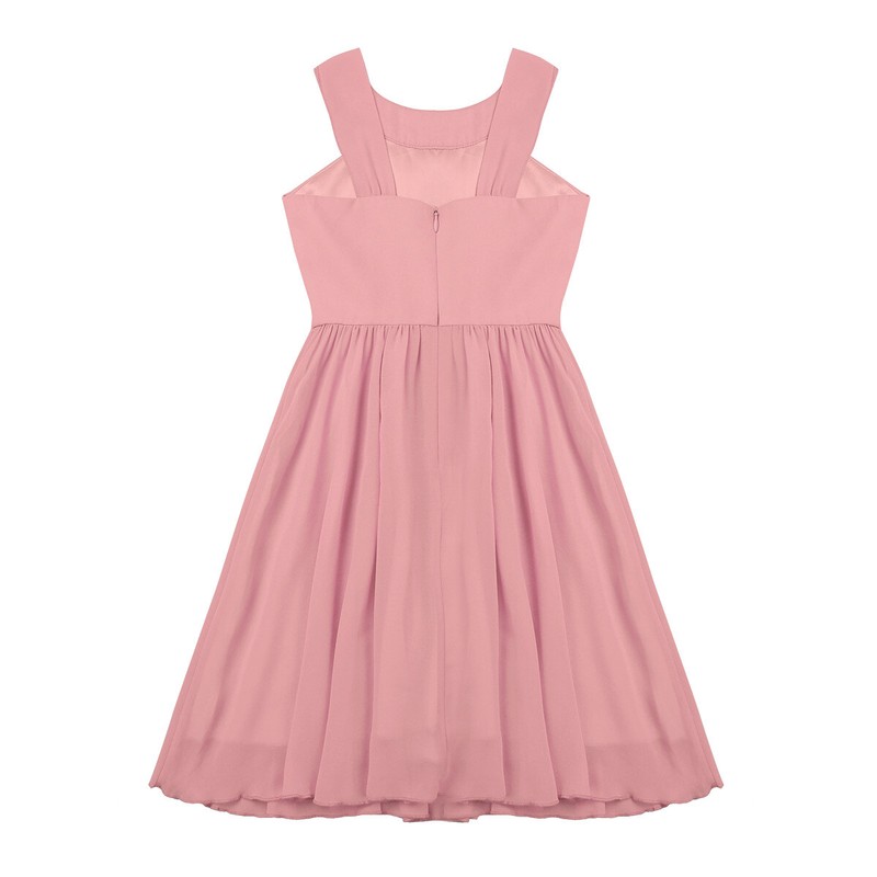 Hidden center back zipper closure. 2 layers dress, top chiffon layer, 1 lining. Beautiful and stylish dress for your girl.