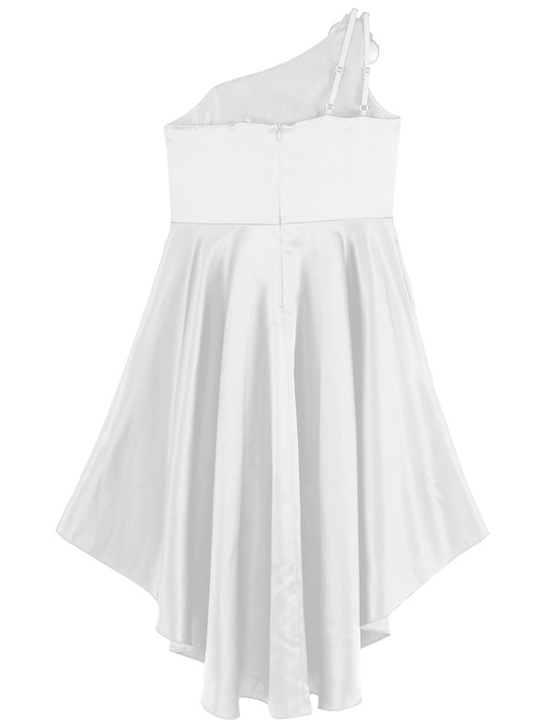 Adjustable spaghetti straps, detachable fake flowers and ruffled design, irregular hemline, which is unique and chic.