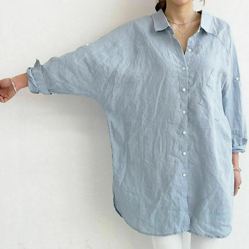 * Item:Women Linen Look Oversize Longline Shirt Loose Casual Boyfriend Style Blouse Top