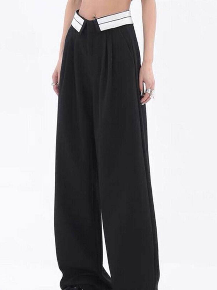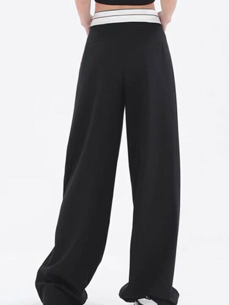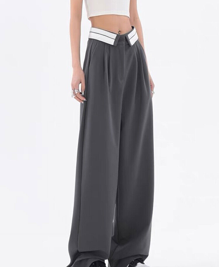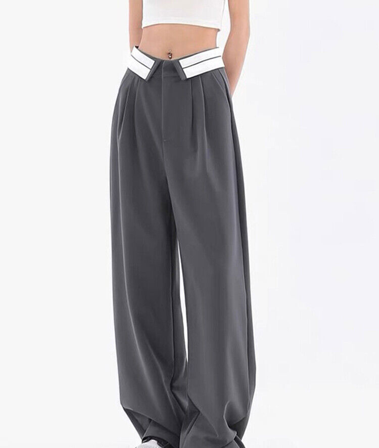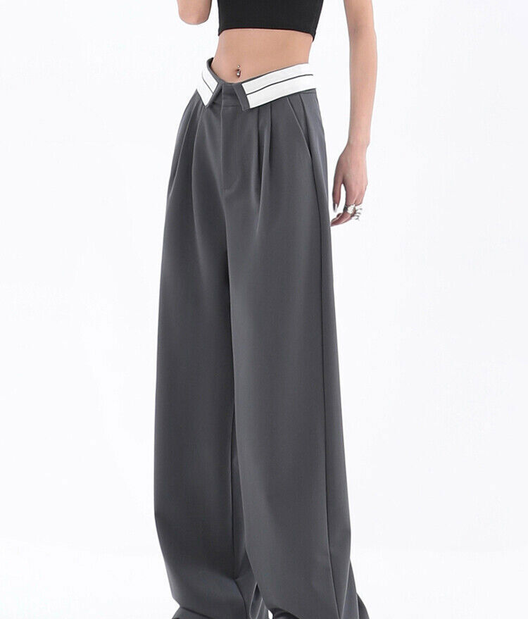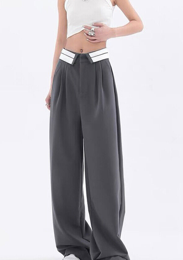 Women Solid Color Suit Pant Simple Chic Wide Leg Trousers High Waist Loose Casua