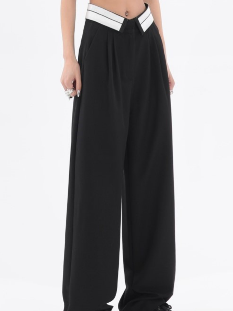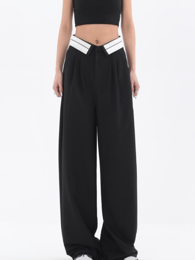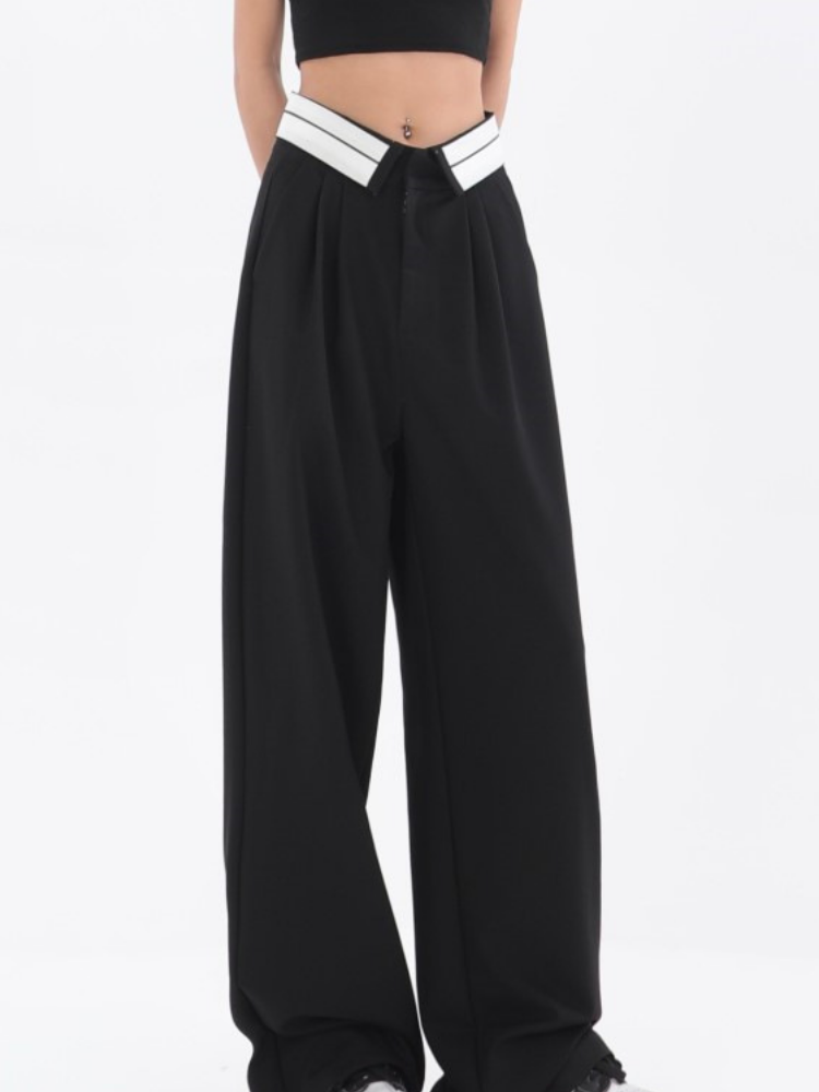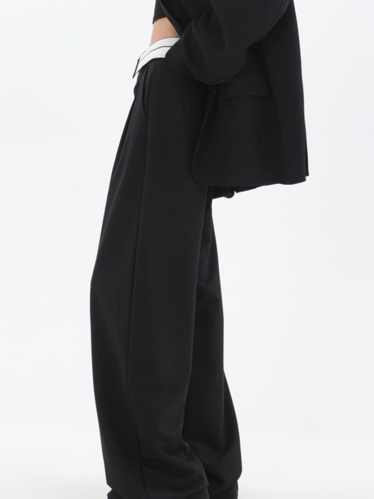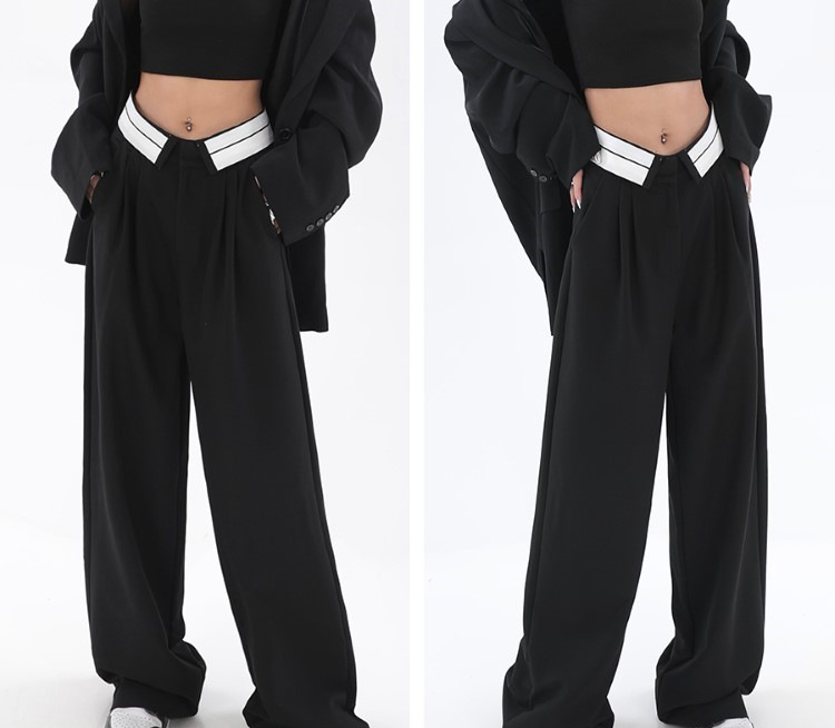 Women Solid Color Suit Pant Simple Chic Wide Leg Trousers High Waist Loose Casua