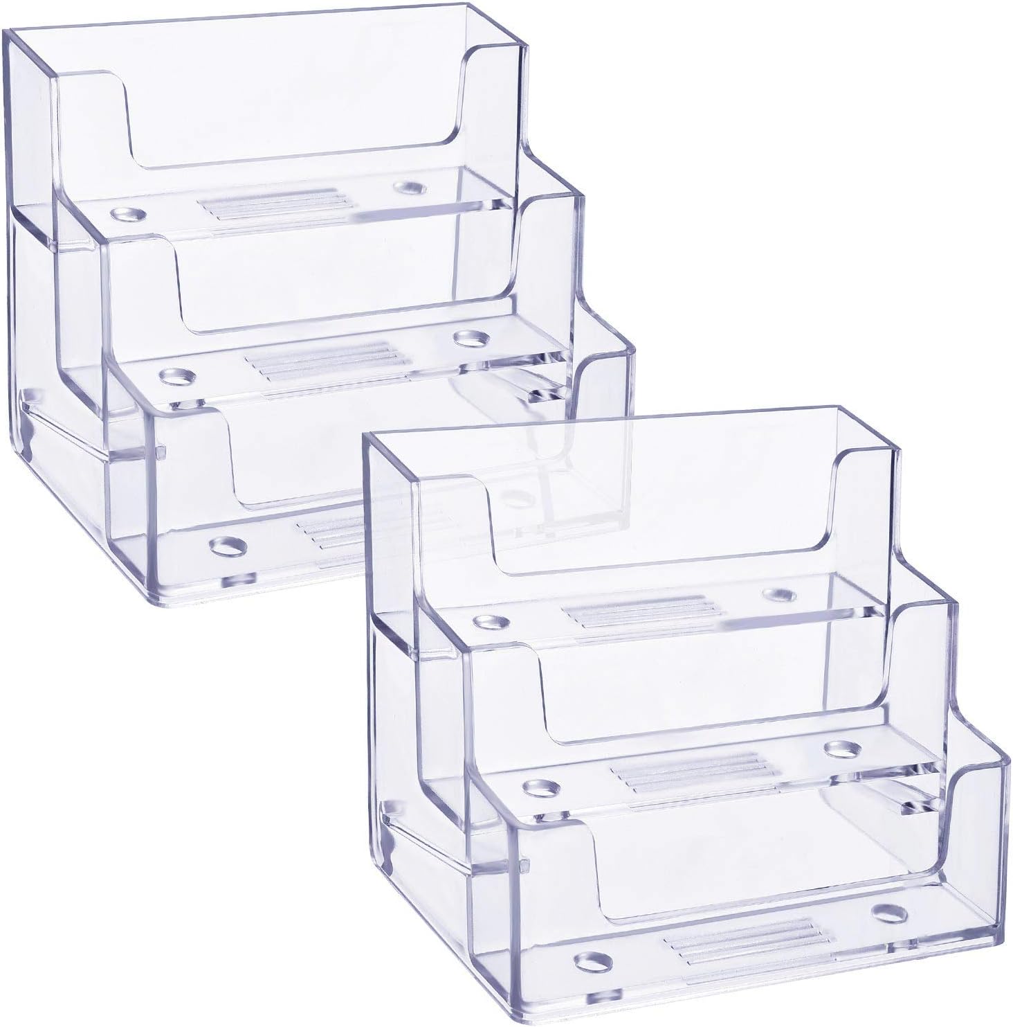 TecUnite 2 Pack Business Card Holder 3 Tiers Acrylic Stand Organizer clear