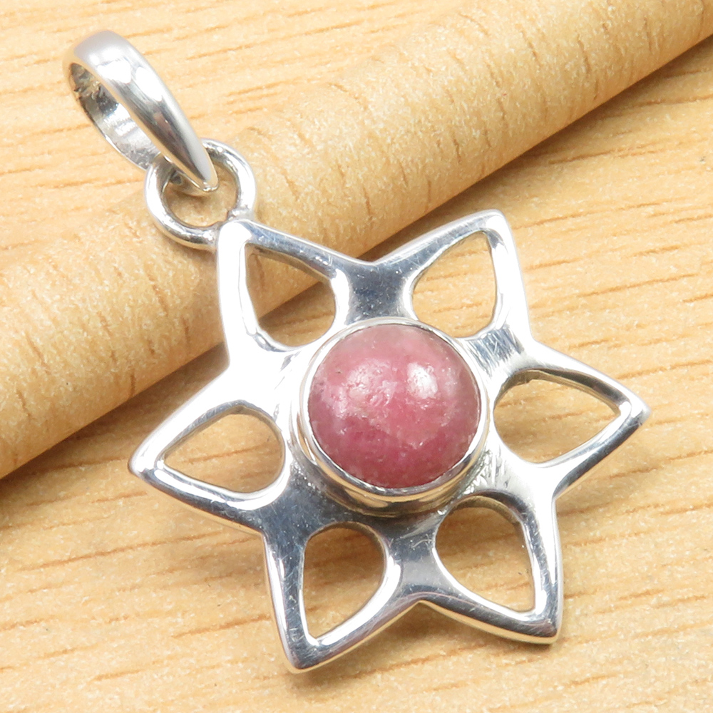 925 Solid Sterling Silver RHODOCHROSITE Pendant 3.1 cm Chunky Gemstone Jewelry