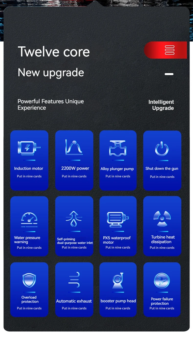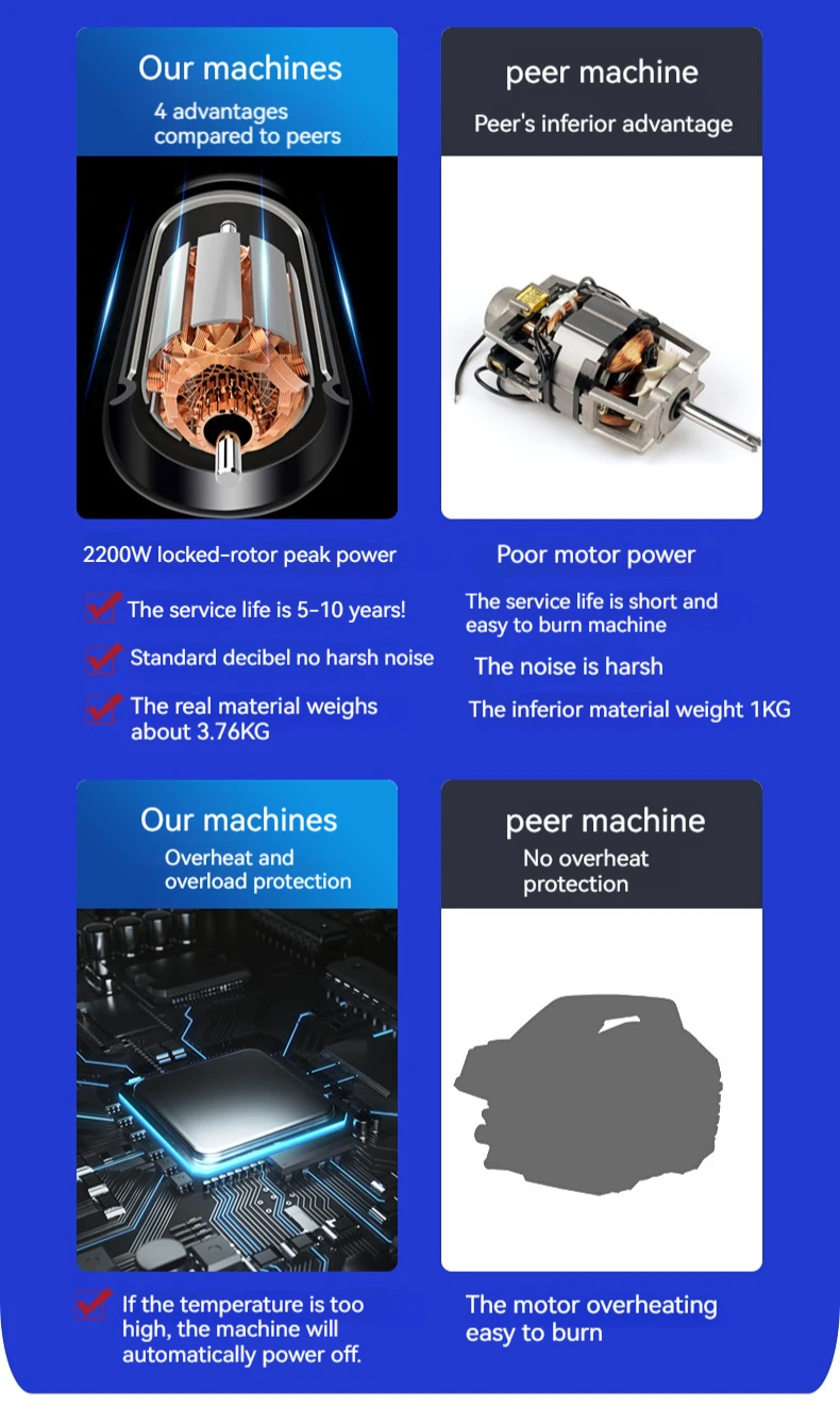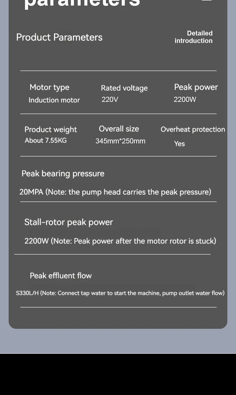 Locked rotor peak power: 2200W (note: peak power after jamming the motor rotor)