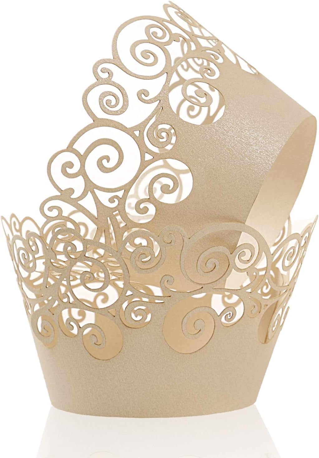 - Material:These cupcake holders are made of high quality pearlecent art paper , with a unique glittering coating, and hollow-out new vine pattern lace design..Easy to assemble and hard to fall apart.