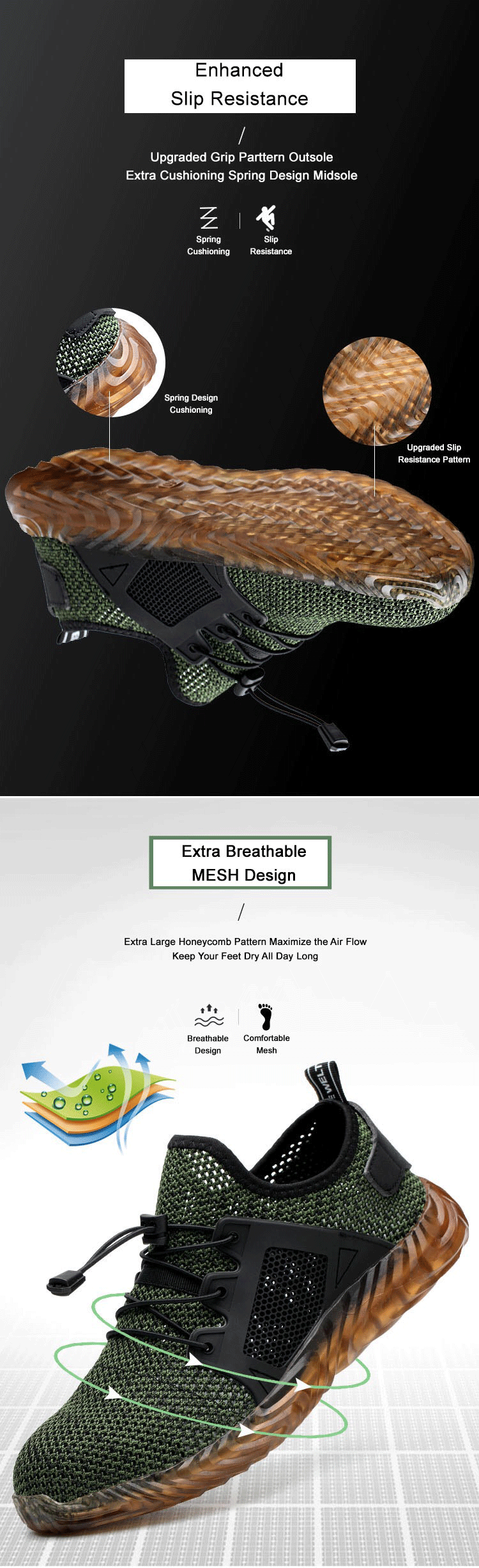 ✔️ Puncture-Proof Sole – 5mm-thick anti-penetration midsole shields against nails, glass, and sharp debris.