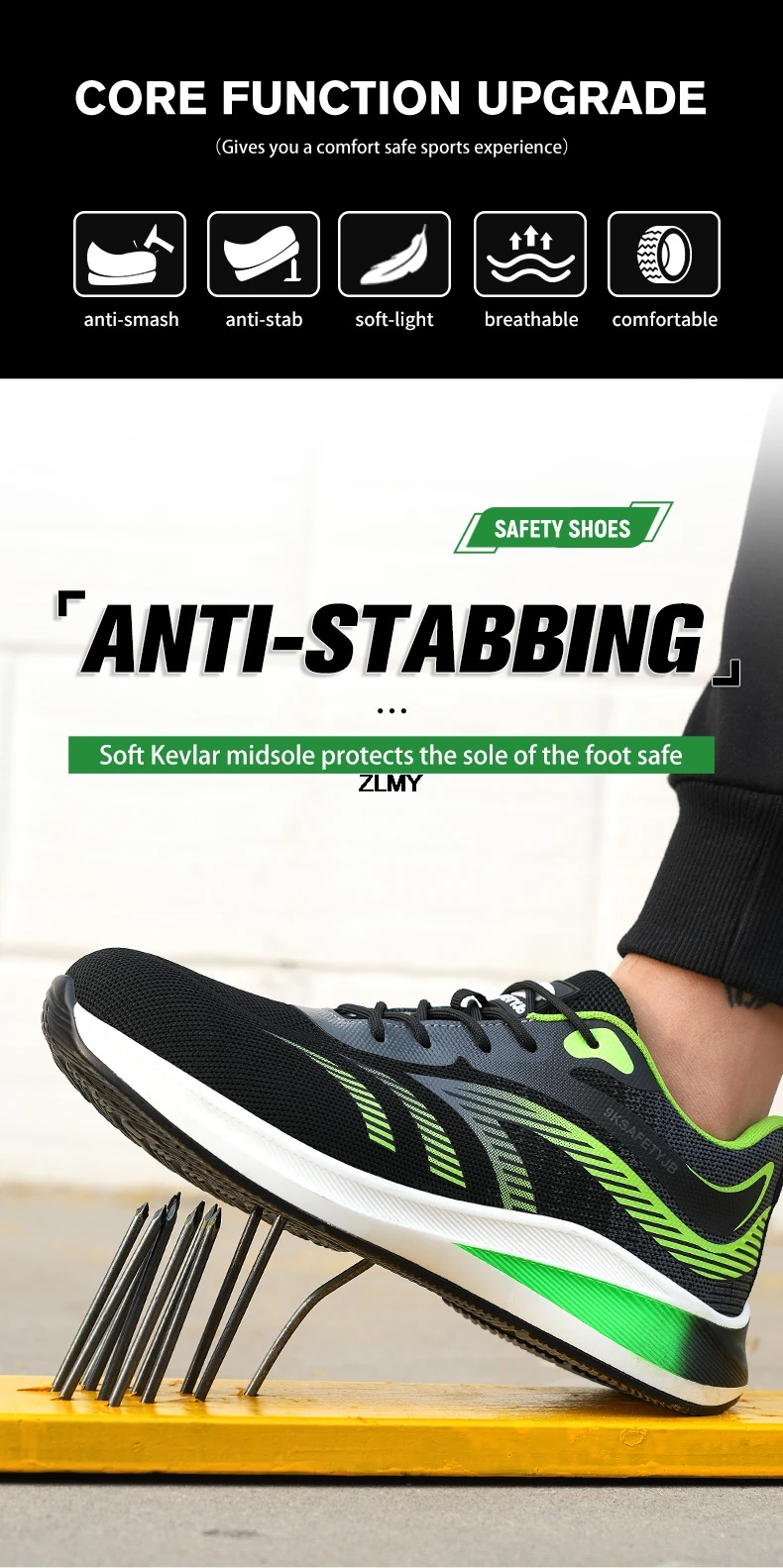 ✔️ Puncture-Proof Sole – 5mm-thick anti-penetration midsole shields against nails, glass, and sharp debris.