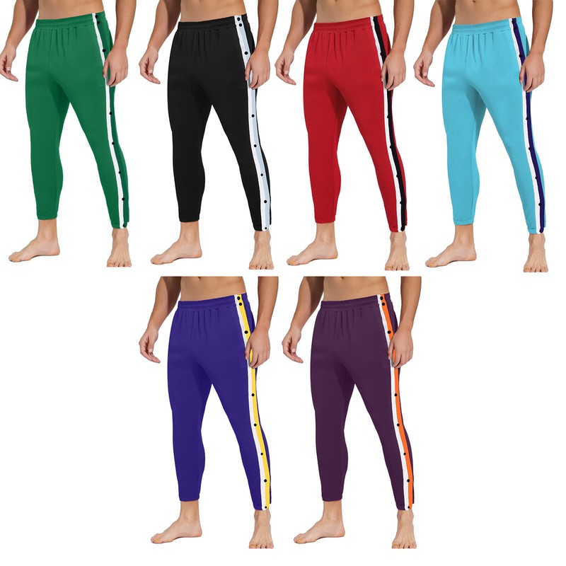 Sport pants for men, side split design with press buttons, which is easy to adjust into a comfortable wearing state.