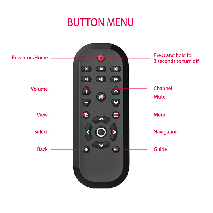l Using infrared remote control technology, the remote control is loaded with two "AAA" batteries, and you can turn on your Xbox Series X host by short pressing the HOME button on the remote control.