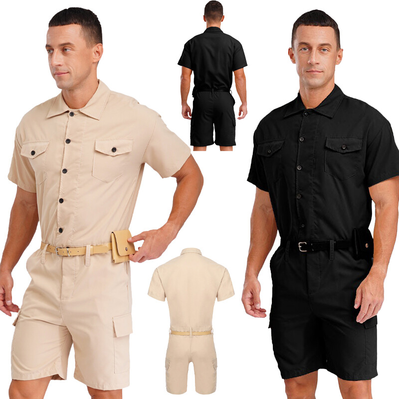 Mens Bodysuit Shorts Rompers Solid Jumpsuit Utility Stylish Navy Cargo Bottom