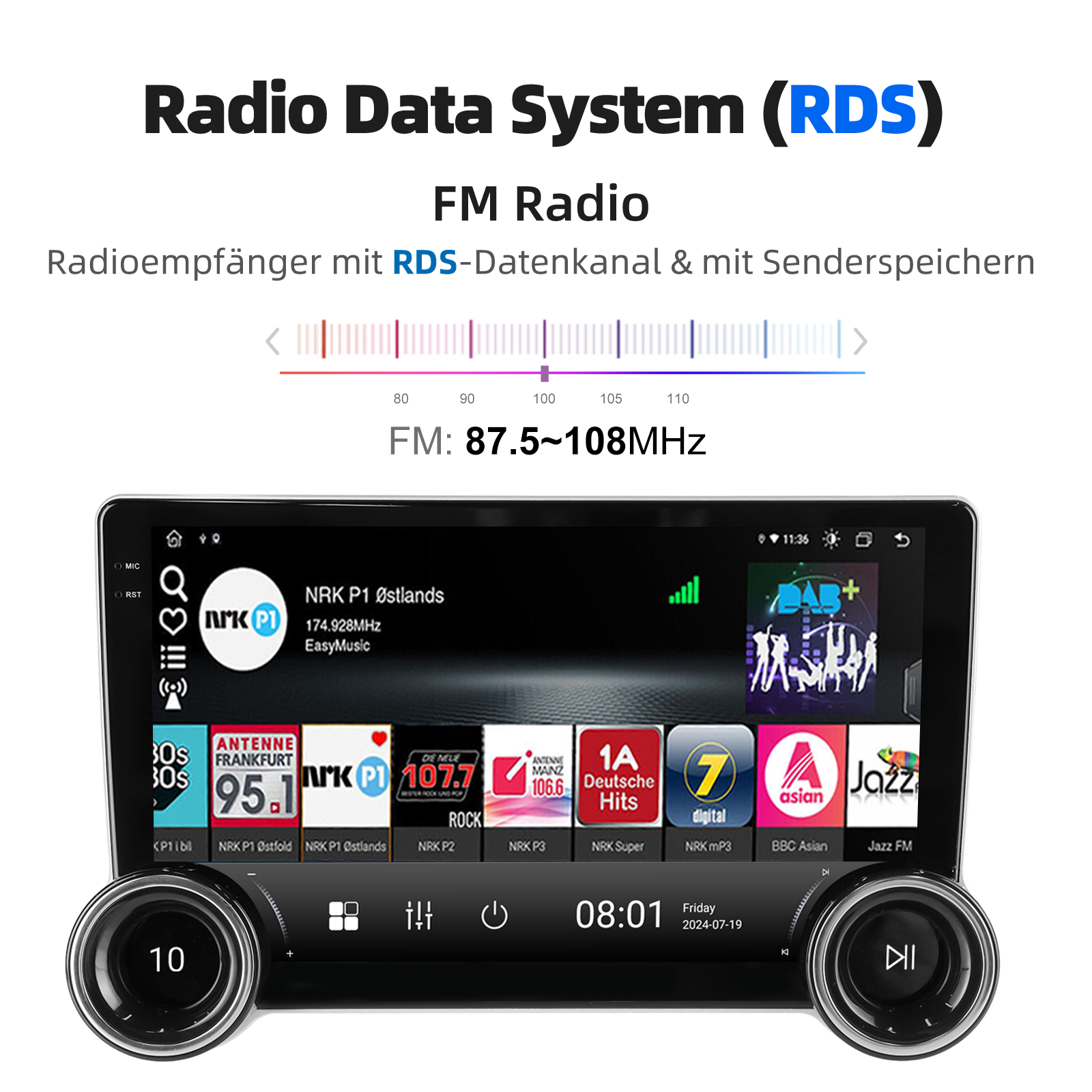 Radio Data System (RDS): RT, AF, TA provides all the FM channel information you need.