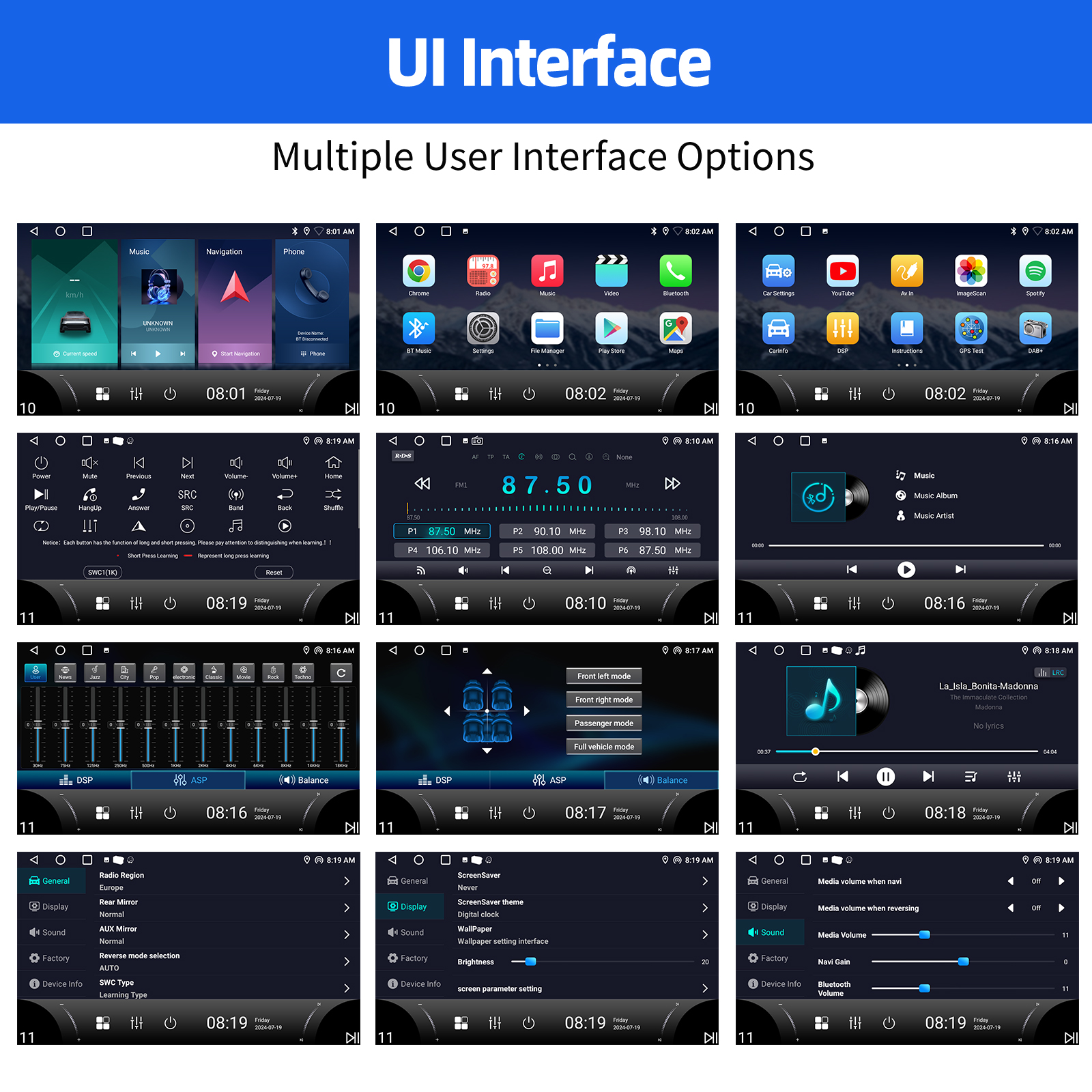 RDS/FM Radio & Bluetooth & ASP Sound Setting: Supports Bluetooth 4.1, with built-in microphone so you can make hands-free calls while driving. Support access to phone book, music playback interface, etc. RDS supported. You can save 18 FM radio stations. Built-in ASP chip. Supports 32-band EQ setting, which can be adjusted according to your personal preference. Which is very similar to your original sound. 4 x 45W amplifier, surround sound and subwoofer output
