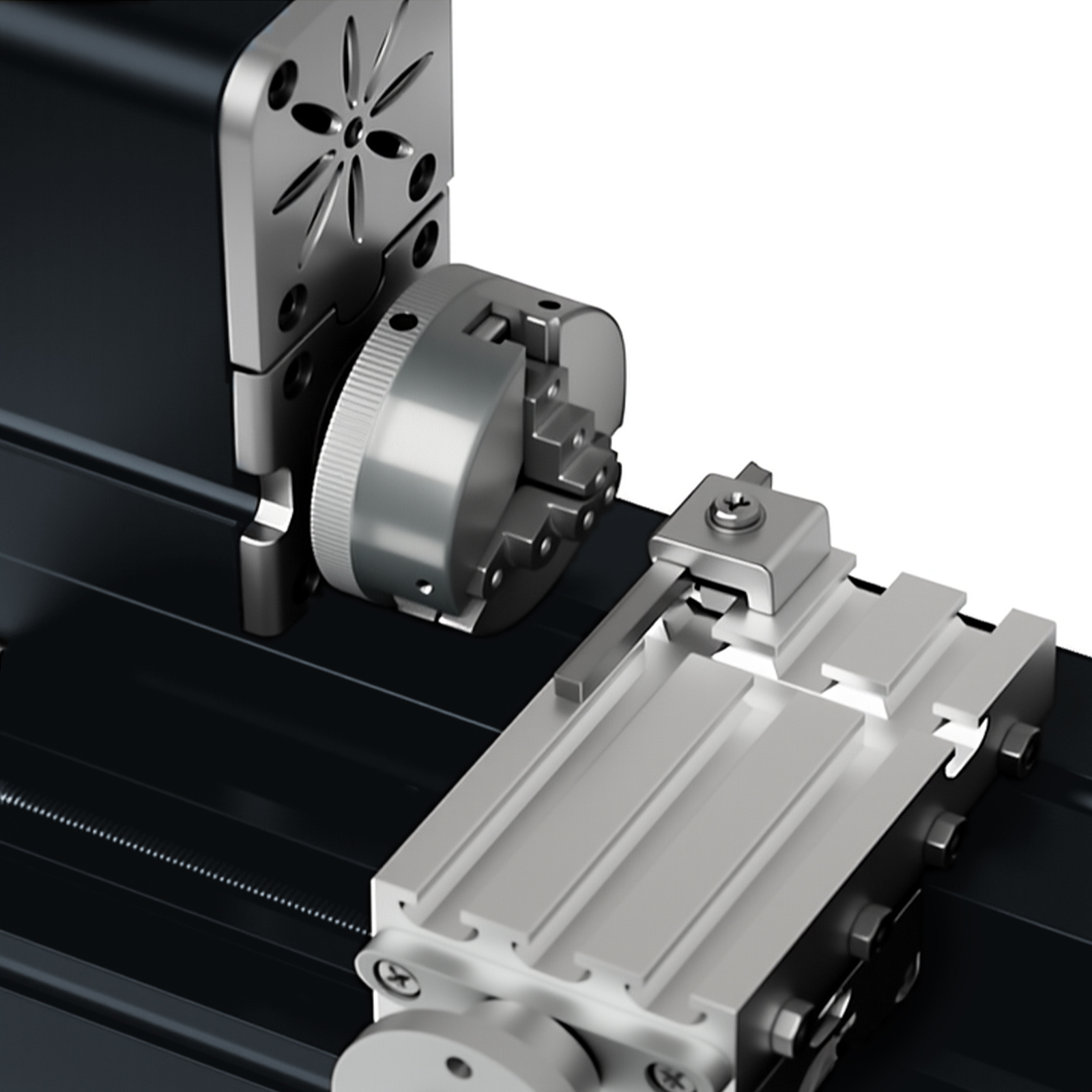 14.There are three parallel dovetail slots available on the big slider, which facilitate the movement of mini lathe tools and installment of the holders and the cutlery.