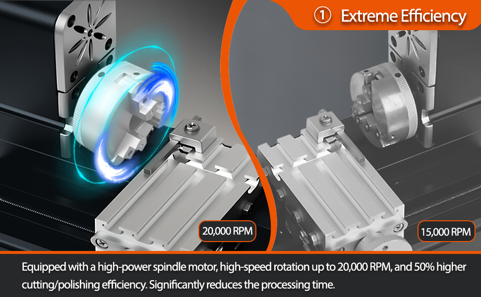 motor is adopted with all drive axes, maximum speed up to 20,000RPM