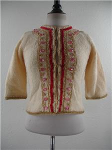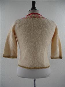check my other auctions - I have HUNDREDS of items that I will be listing and I LOVE to combine shipping so keep bidding! SIZE: Vintage S, it measures like a Women's S (our mannequin is a Women's M so keep this in mind when viewing the photos). Please check the measurements to be sure.... MEASUREMENTS: Chest (armpit to armpit across the front): approx 16" Length (down the center of the back): 20" Shoulders (across the back): 14" View pics! I'm listing a bunch of clothes today........check 'em out, there are some beauties! #4424 |
