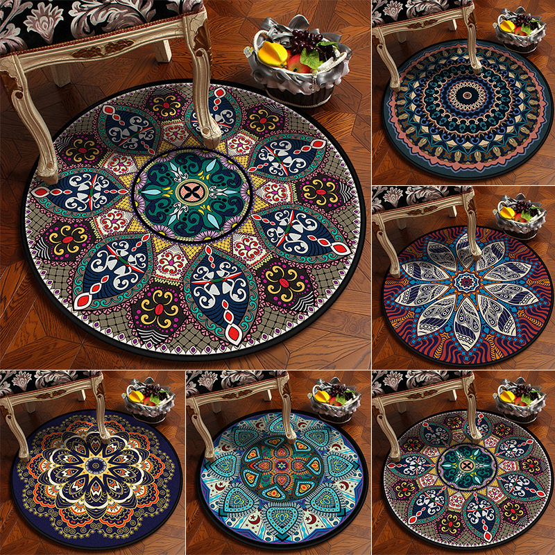 Round Carpets Area Rug Small Retro Floor Mats Mandala Soft Antislip Home Vintage