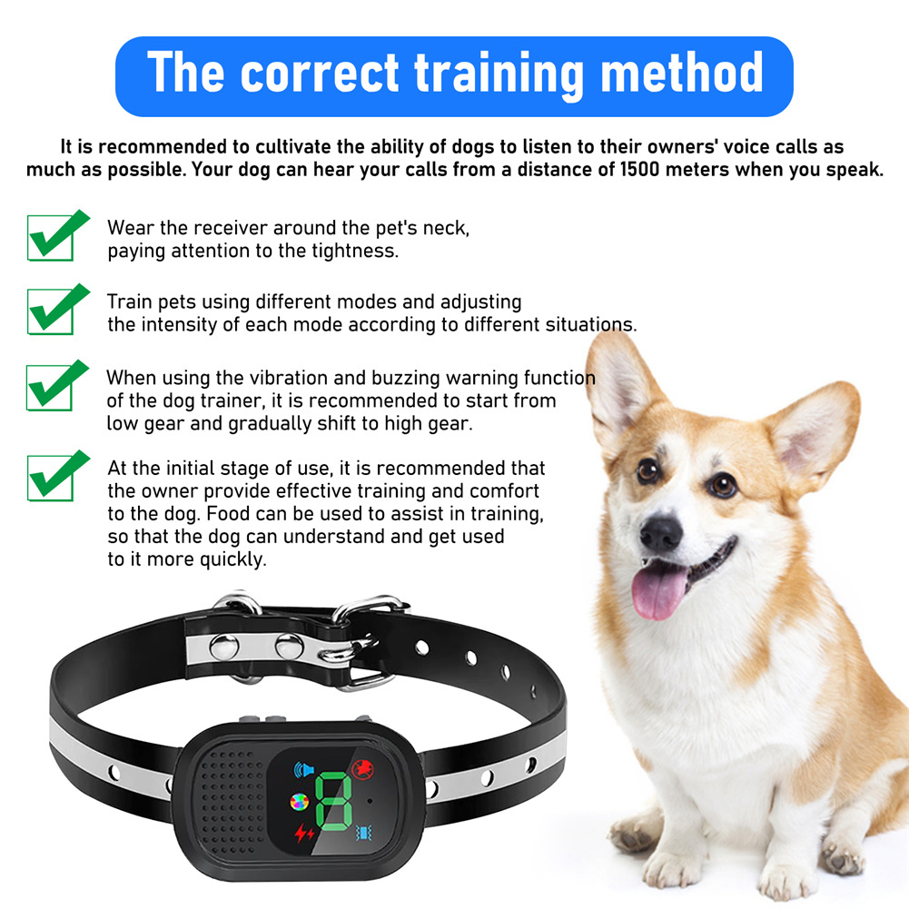 - Humane training methods, in traditional mode, traditionally designed to let your dog know that it is his own behavior or barking that is causing the discomfort. Our anti-barking device has a new walkie-talkie feature, so you can use the walkie-talkie to call your dog back from within 1500 meters /4921 feet. Or some other scene.