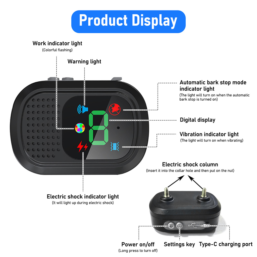 - [Latest remote control level adjustment] : The latest technology, remote control barking device is convenient and simple digital display screen + button adjustment, more clear and sensitive. Power display, mode display, adjustment display, clearly inform. High quality material makes it more long-term safe and effective use