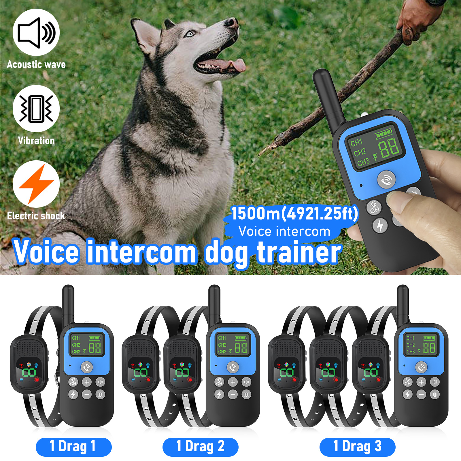 - [Control compatibility] : 1 tow 1 control 1 dog, 1 tow 2 control 2 dogs, 1 tow 3 control 3 dogs