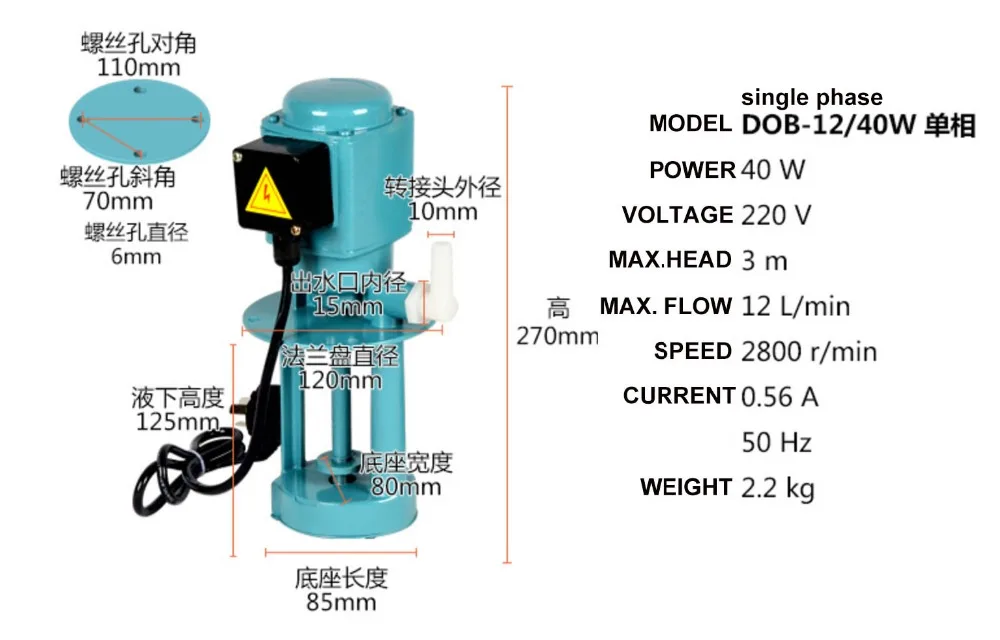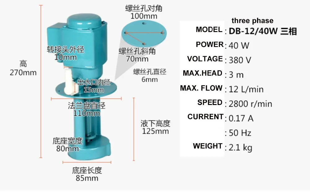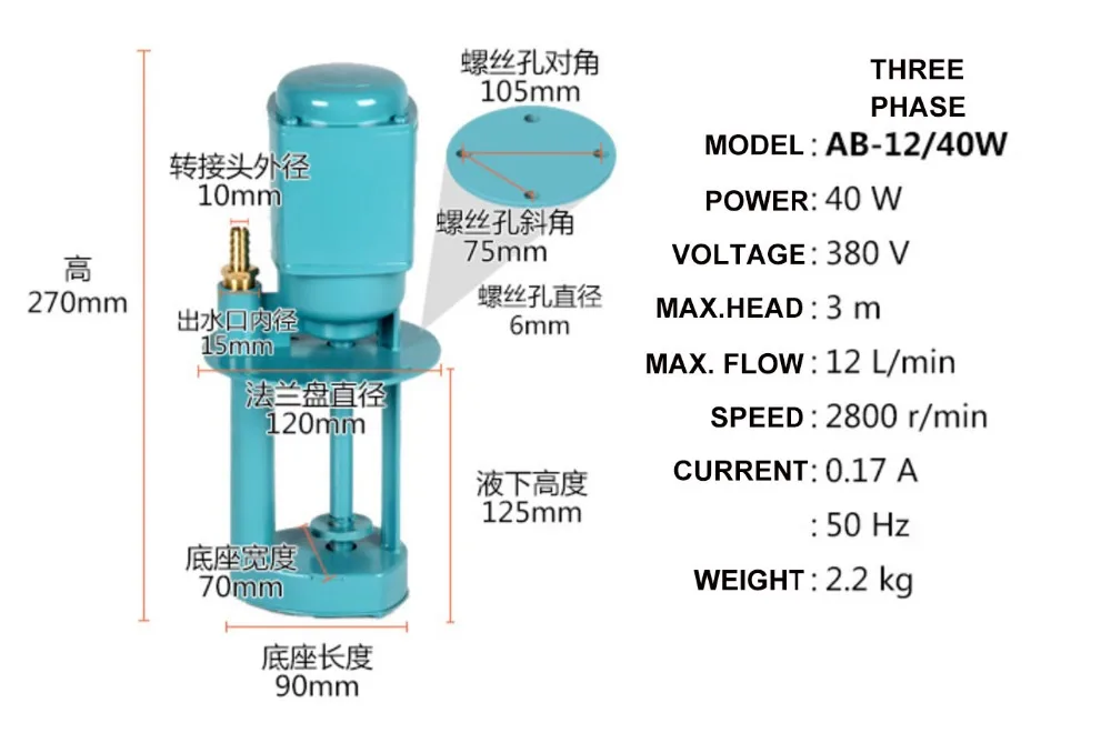 CNC machine tool cycle oil pump lathe cooling pump three-phase electric cooling pump 380v three-phase single-phase electric pump