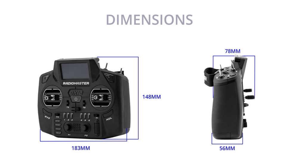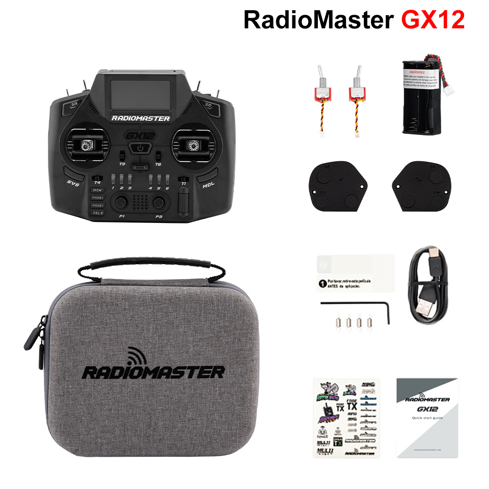 GX12 Radio Controller Supports dual-band and dual-channel, transmission distance is farther, more reliable.New GX01 3D digital CNC Hall joystick ultra 12bit resolution, enjoy fine and precise control, support EdgeTX,Programmable 6-key switch,Equipped with Nano interface as standard, can be connected to 4IN1 high-frequency head.