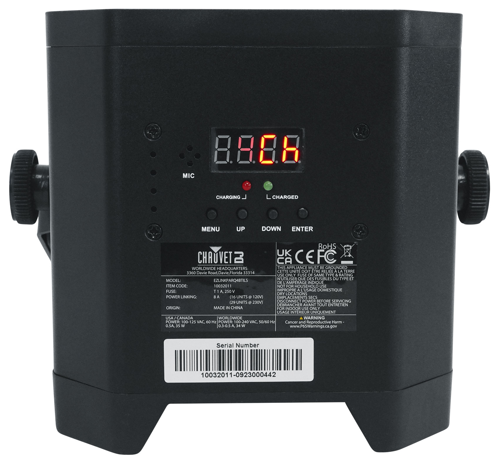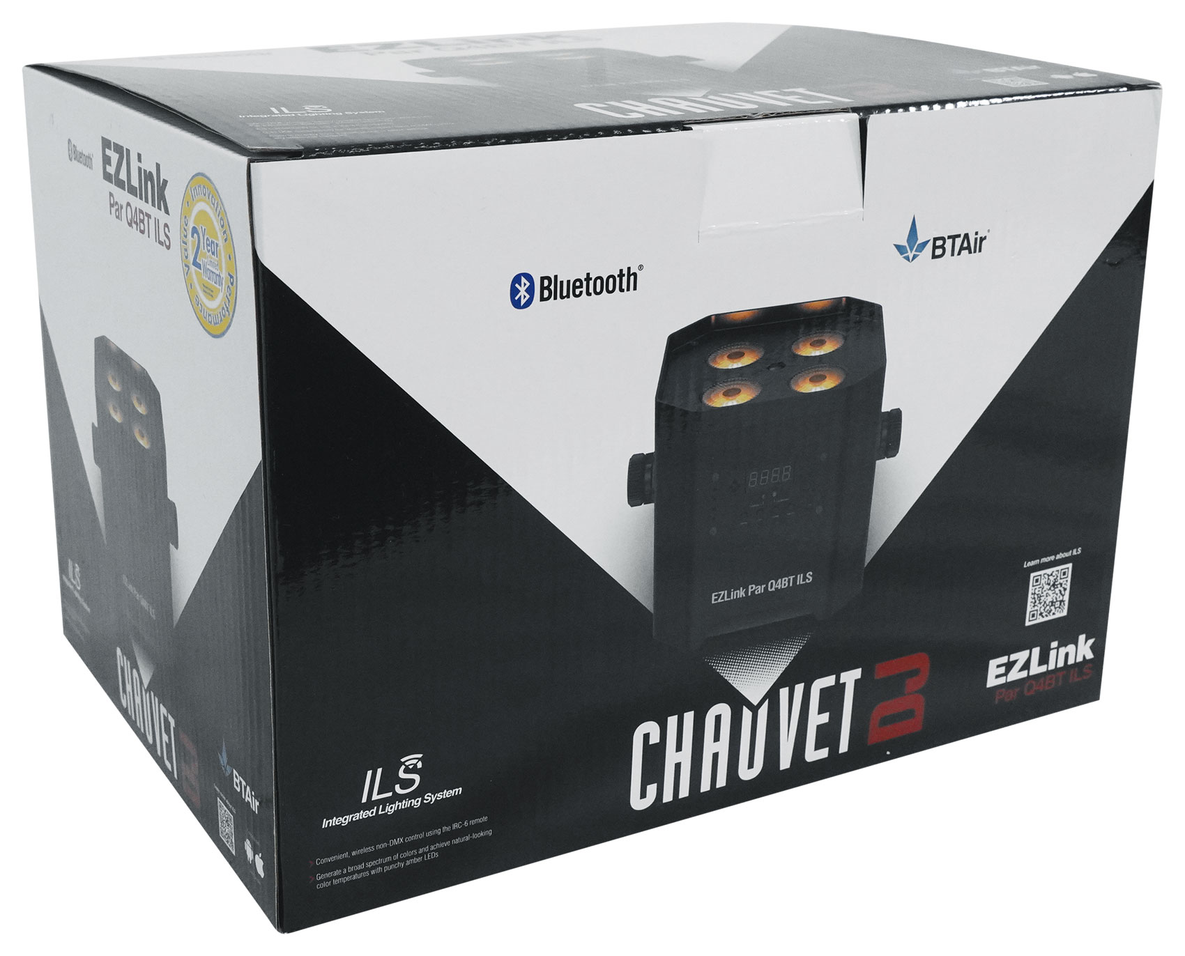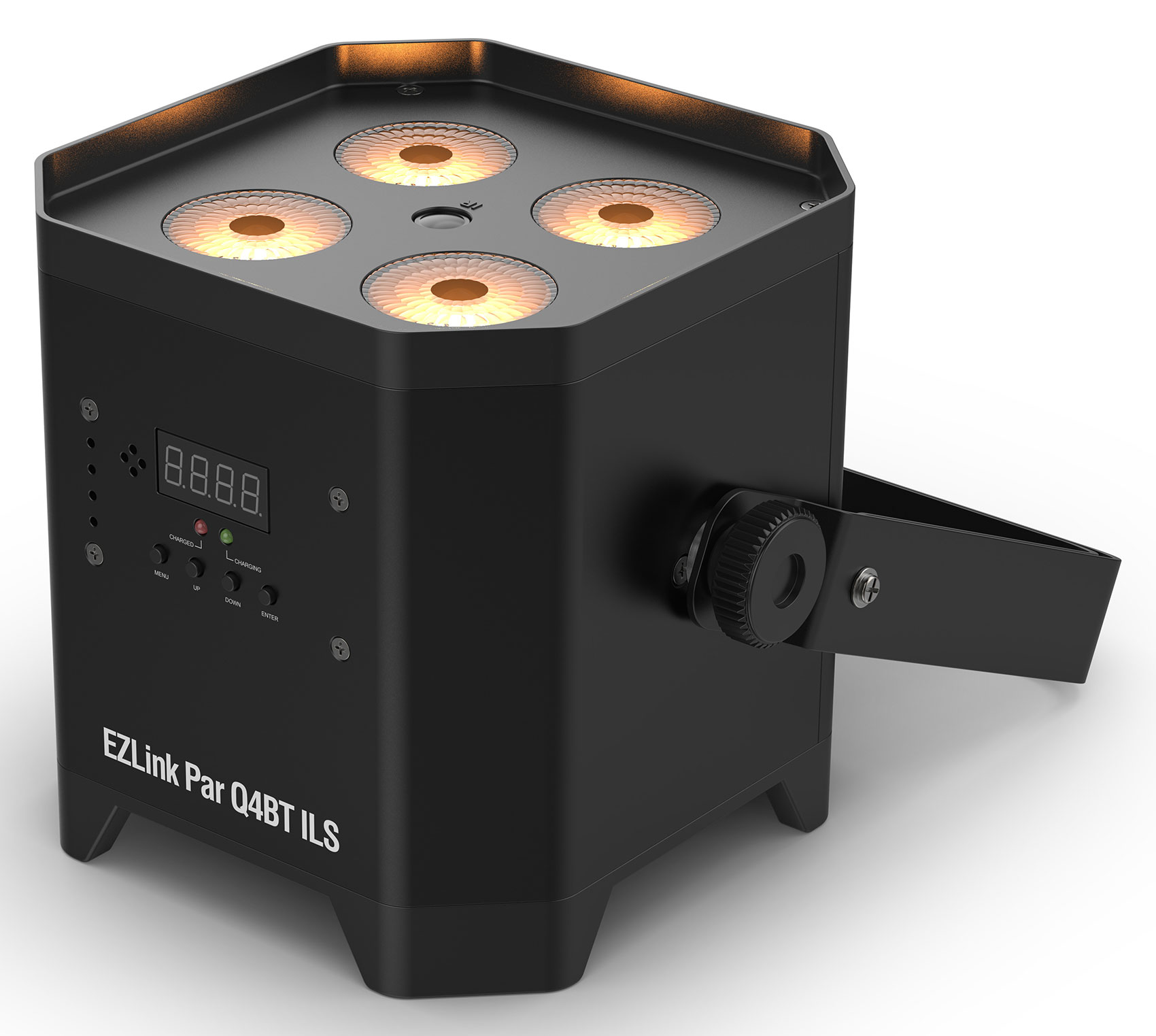 EZLink Par Q4BT ILS is a battery-operated, quad-color (RGBA) LED Par with built-in Bluetooth® wireless technology so you can control directly from a smart phone or tablet without any additional hardware. Cutting-edge ILS (Integrated Lighting System) technology means this powerful par can be used with the ILS ecosystem which makes creating coordinated light shows across an unlimited number of different fixture types fast and easy. And the wireless options keep coming with the addition of D-Fi USB compatibility for wireless lead/follower or DMX control. Of course, convenient, wireless non-DMX control is possible using the IRC-6 remote. Generate a broad spectrum of colors and achieve natural-looking color temperatures with punchy amber LEDs and generate eye-catching effects with sound-activated and automated programs.