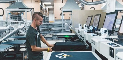 It's the advanced technology in our circular supply chain that makes this possible. Out in business-as-usual land, clothes are mass produced speculatively, producing massive amounts of waste: 40% of clothing is never worn. Our sustainable t-shirt printing software prints products in the seconds after they've been ordered, and dropshipping directly to the customer saves transport costs and lowers emissions. Those savings are spent on making organic cotton farming and renewables affordable. Robotics does the same thing, making the packing process 30% more efficient so the 10X increased cost of using sustainable packaging made from plants, not plastic is covered.
