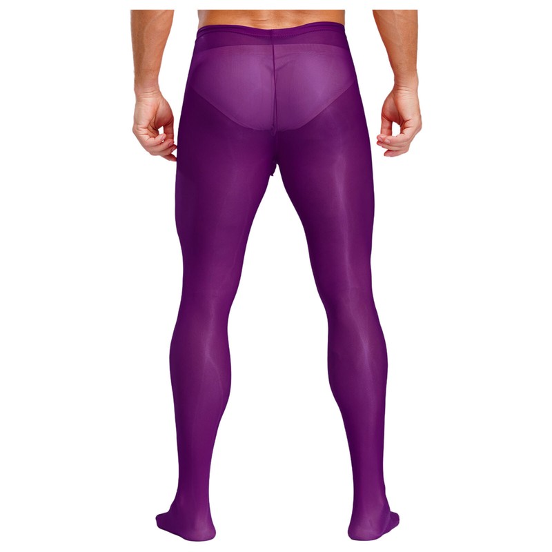 Pantyhose tights for men, elastic waistband, convenient bulge pouch with convenient opening end.