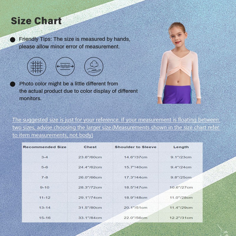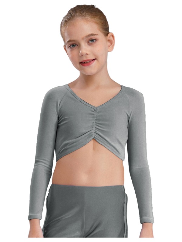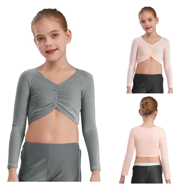 Girls Shirt Yoga Tops Long Sleeve Crop Top Ruched Cardigan Ballerina Costume