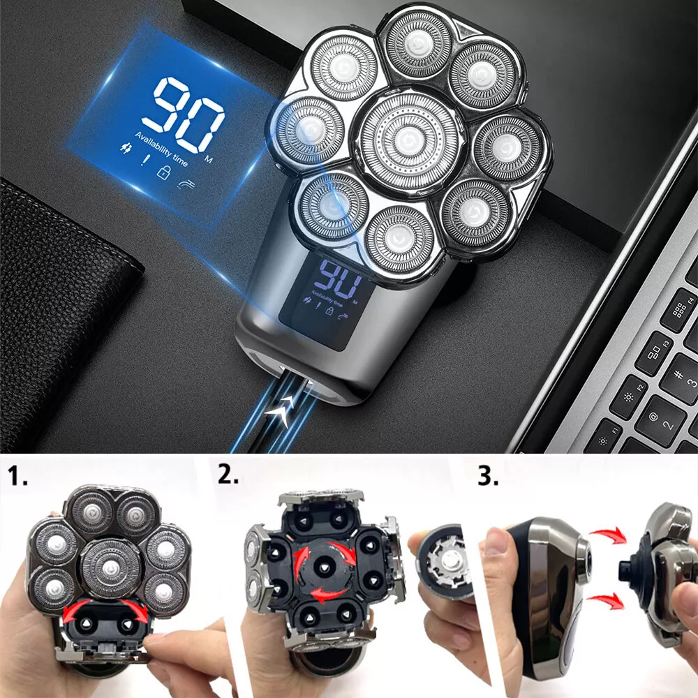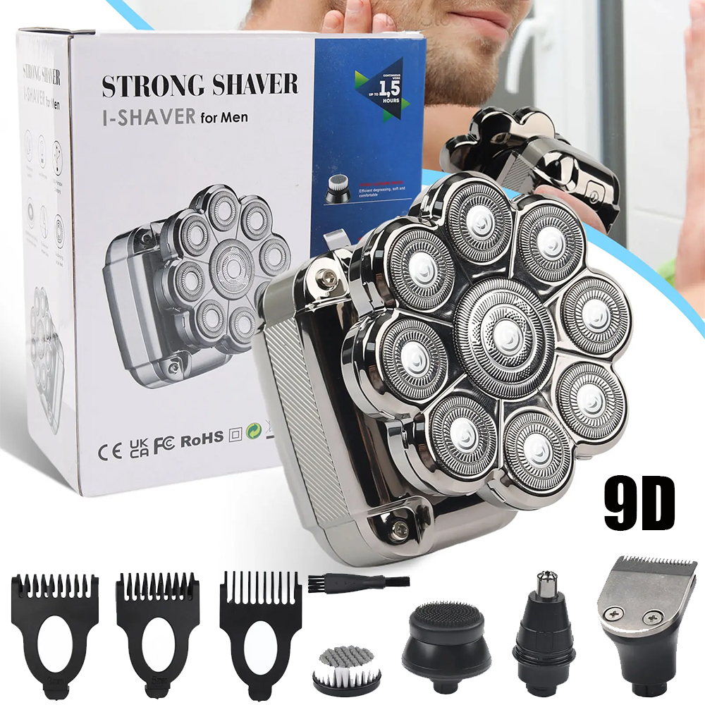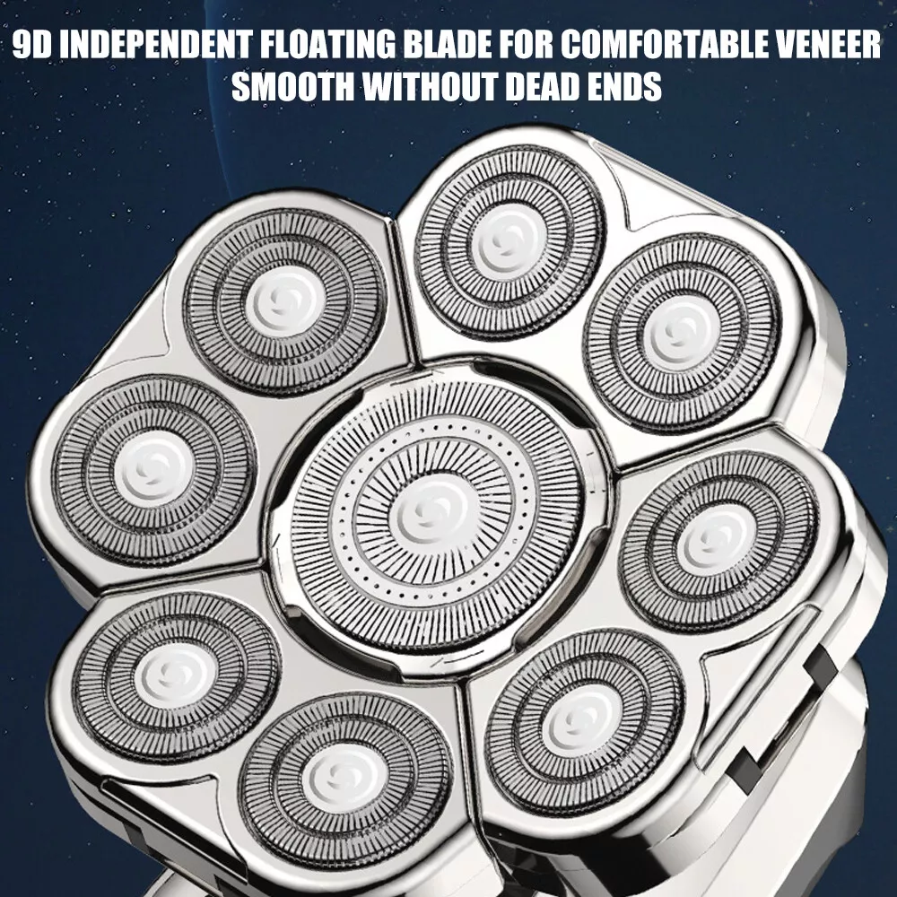 ✅【Upgraded 9D Floating Head Shaver】The mens electric shavers is equipped with 9 sharp floating heads and double ring blades.Can perfectly follows the contours of your face,the head,the neck and jaw line.Electric shaver will not pull your hair and beard,reduce irritation to the skin and scalp,and improves the comfort and closeness of the shave.It ensure gentle and efficient shave to save your valuable time.