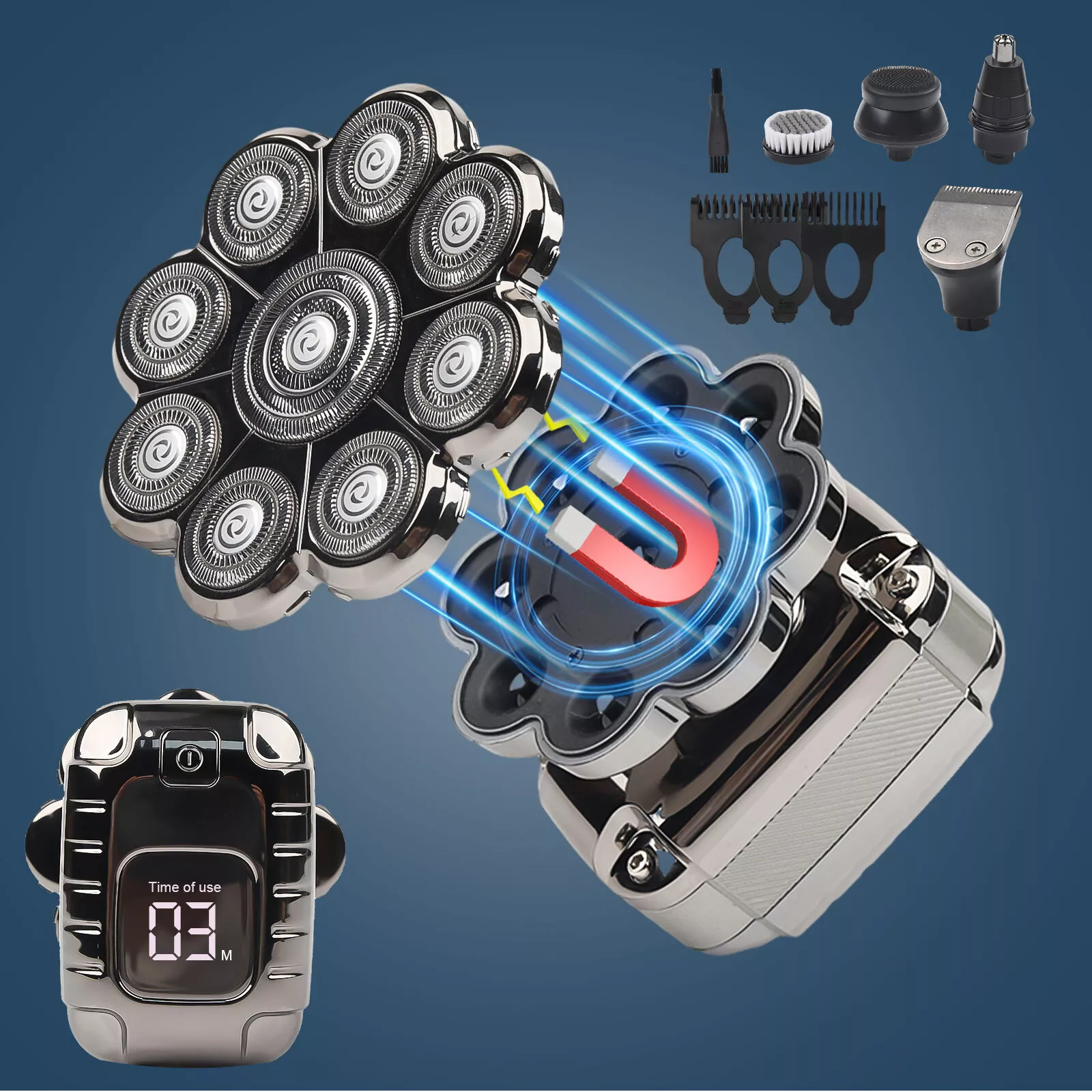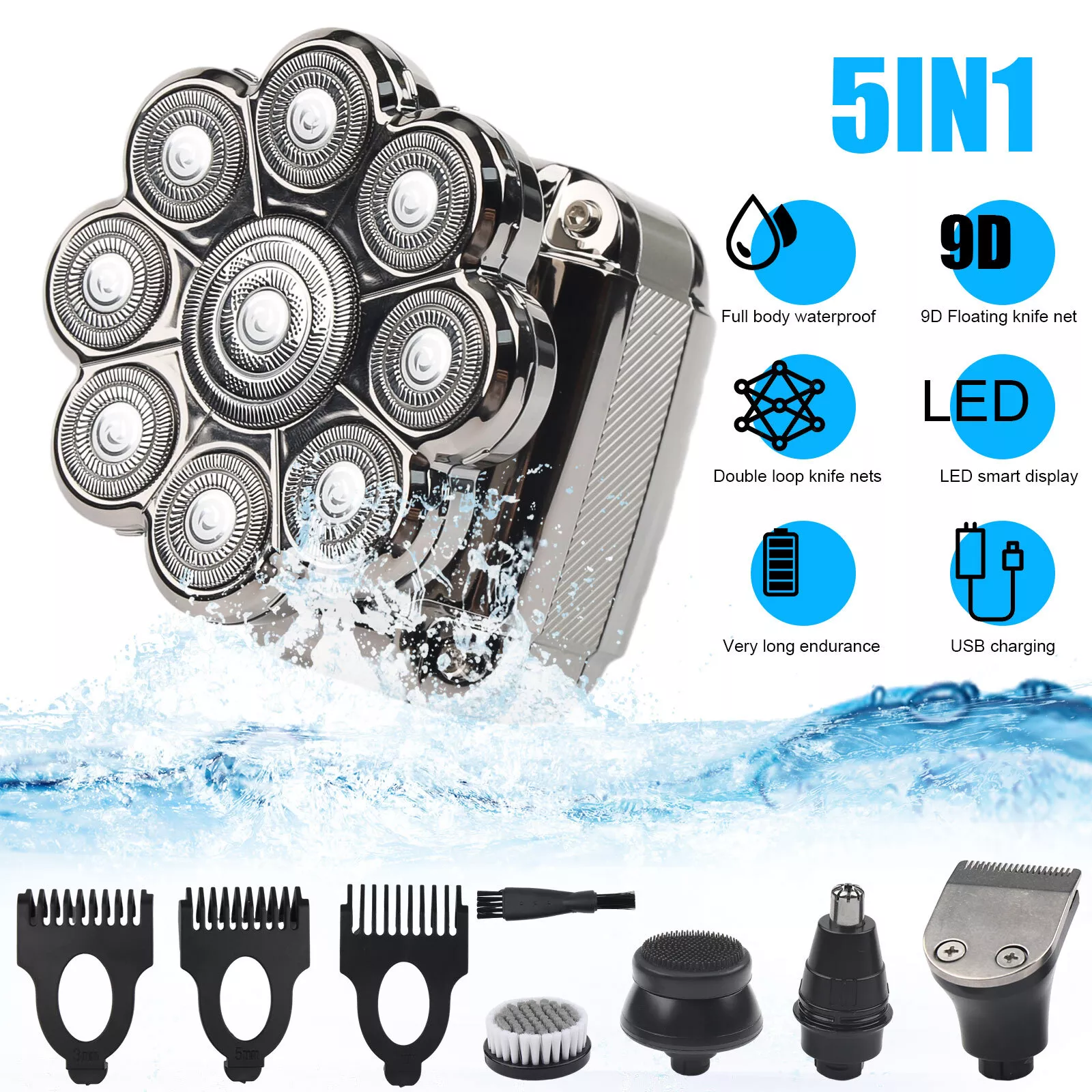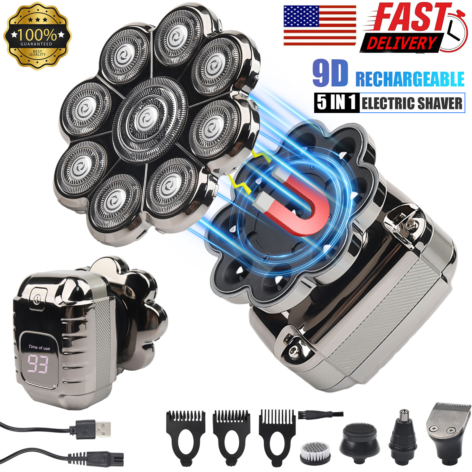 ✅【Upgraded 9D Floating Head Shaver】The mens electric shavers is equipped with 9 sharp floating heads and double ring blades.Can perfectly follows the contours of your face,the head,the neck and jaw line.Electric shaver will not pull your hair and beard,reduce irritation to the skin and scalp,and improves the comfort and closeness of the shave.It ensure gentle and efficient shave to save your valuable time.