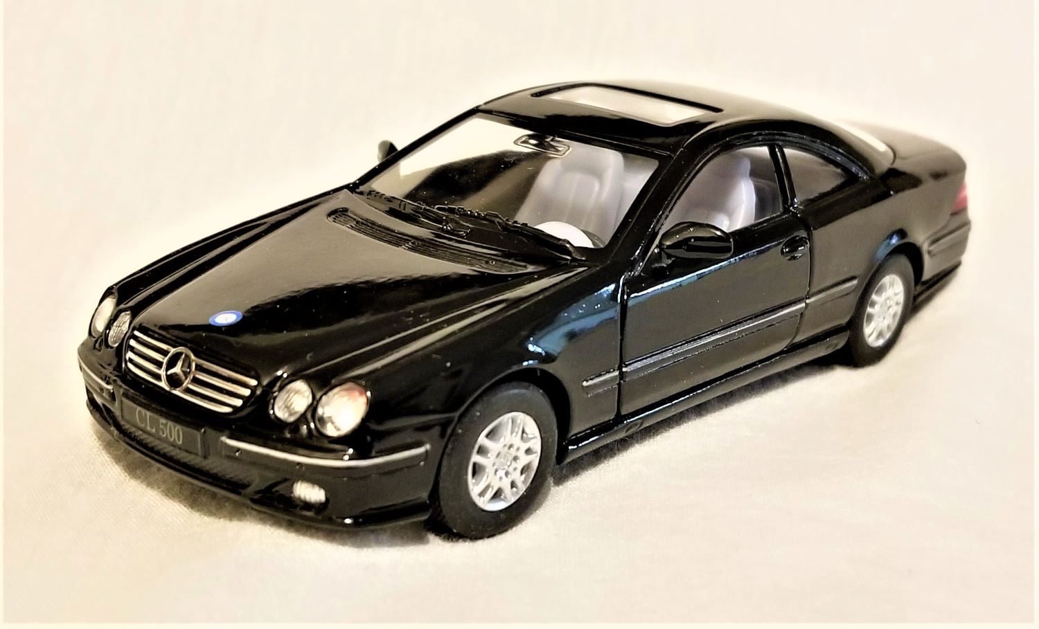This is a Brand New Kinsmart - 1:38 Scale Model Mercedes-Benz CL 500 Black. The model is about 5 inches long. This model comes with pull back & go and opening doors features. These models come in a big display box and they don't have individual boxes. They will be expertly packed and shipped.