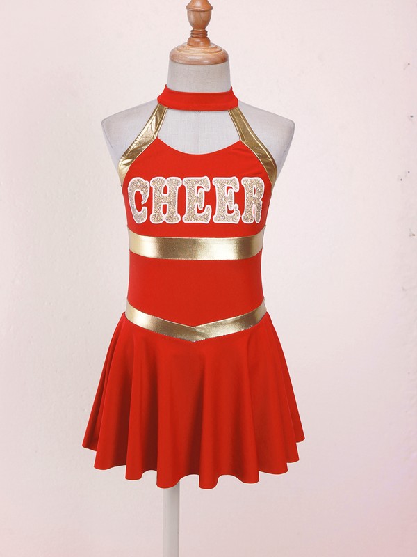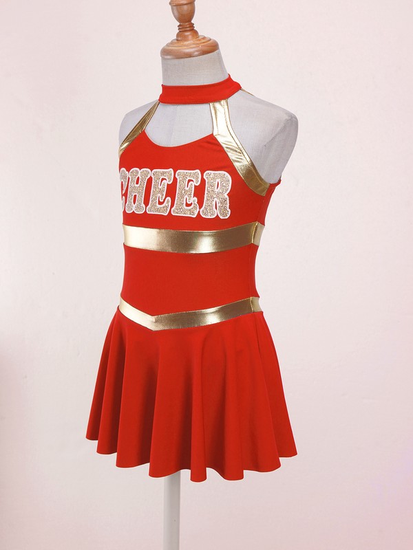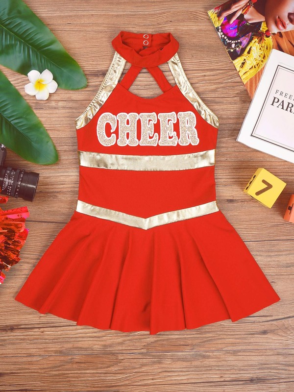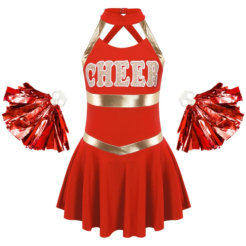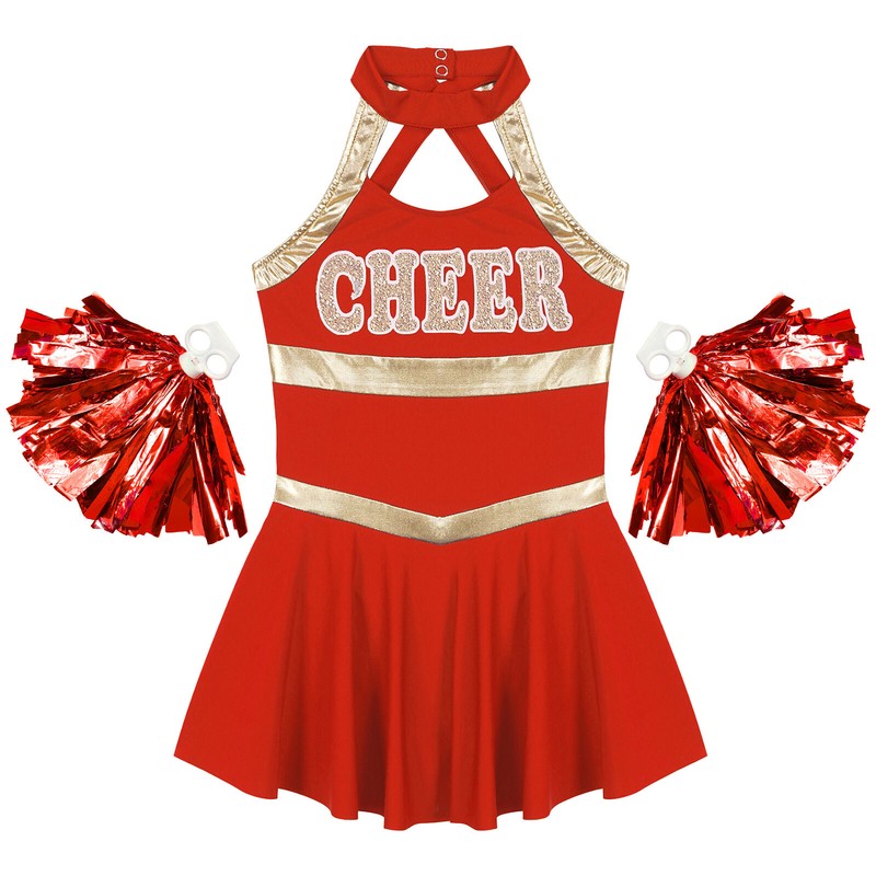 Kids Girls Sleeveless Dress with 1 Pair Flower Balls for Cheerleading.