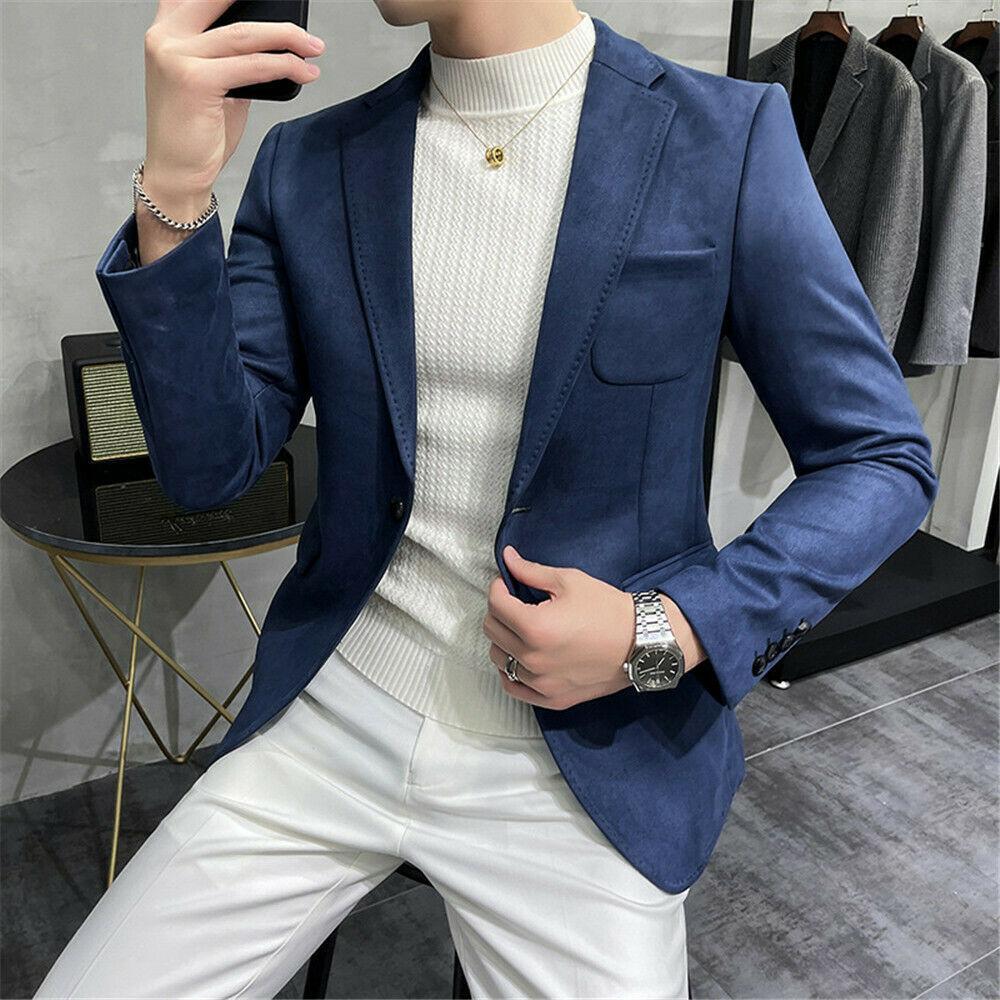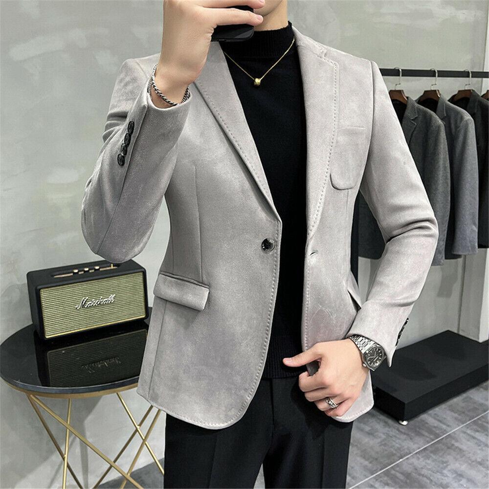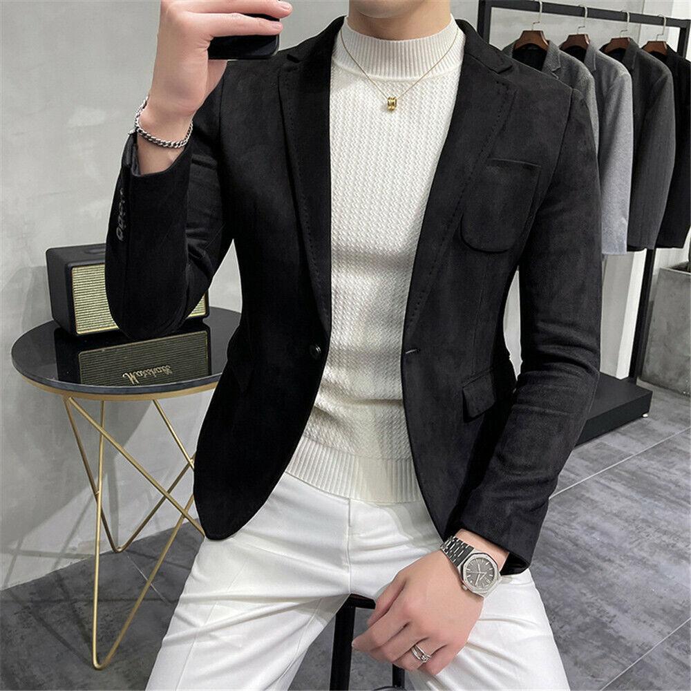 Men Formal Suede Blazer Jacket Business Casual Button Slim Fit Suit Coat Tops