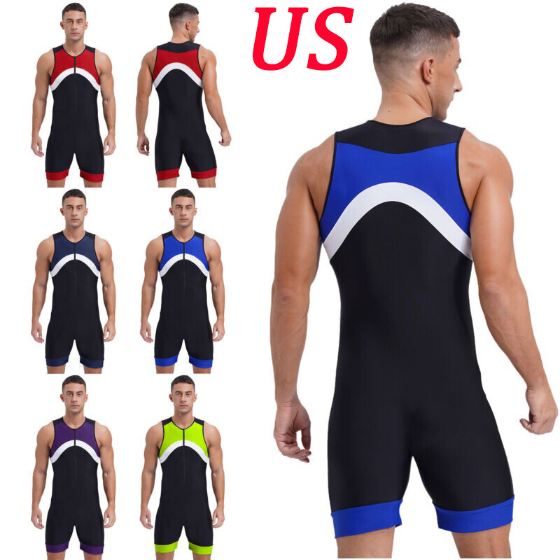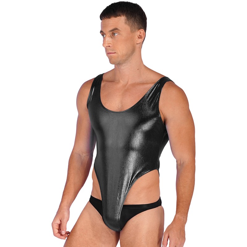 US Mens One-Piece Swimsuit Wetlook Leather Stretch Leotard Bodysuit Bathing Suit